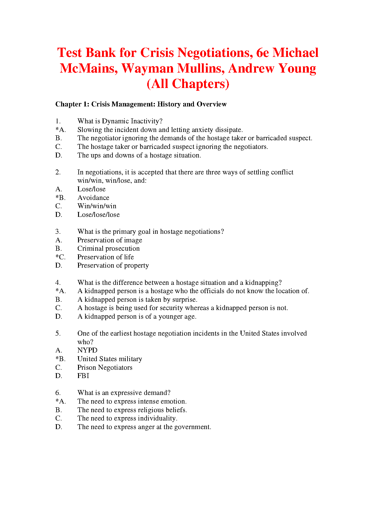 Crisis Negotiations 6th Edition Test Bank by Michael McMains, Wayman Mullins, and Andrew Young