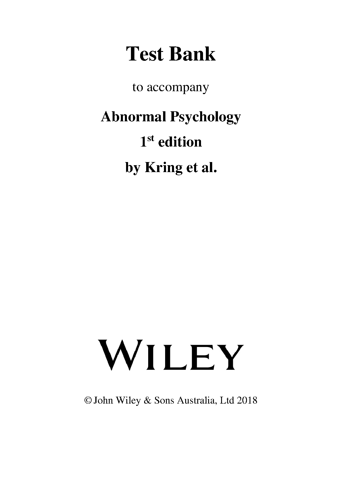 Abnormal Psychology 1st Edition Test Bank by Kring, Johnson, Davison, & Neale