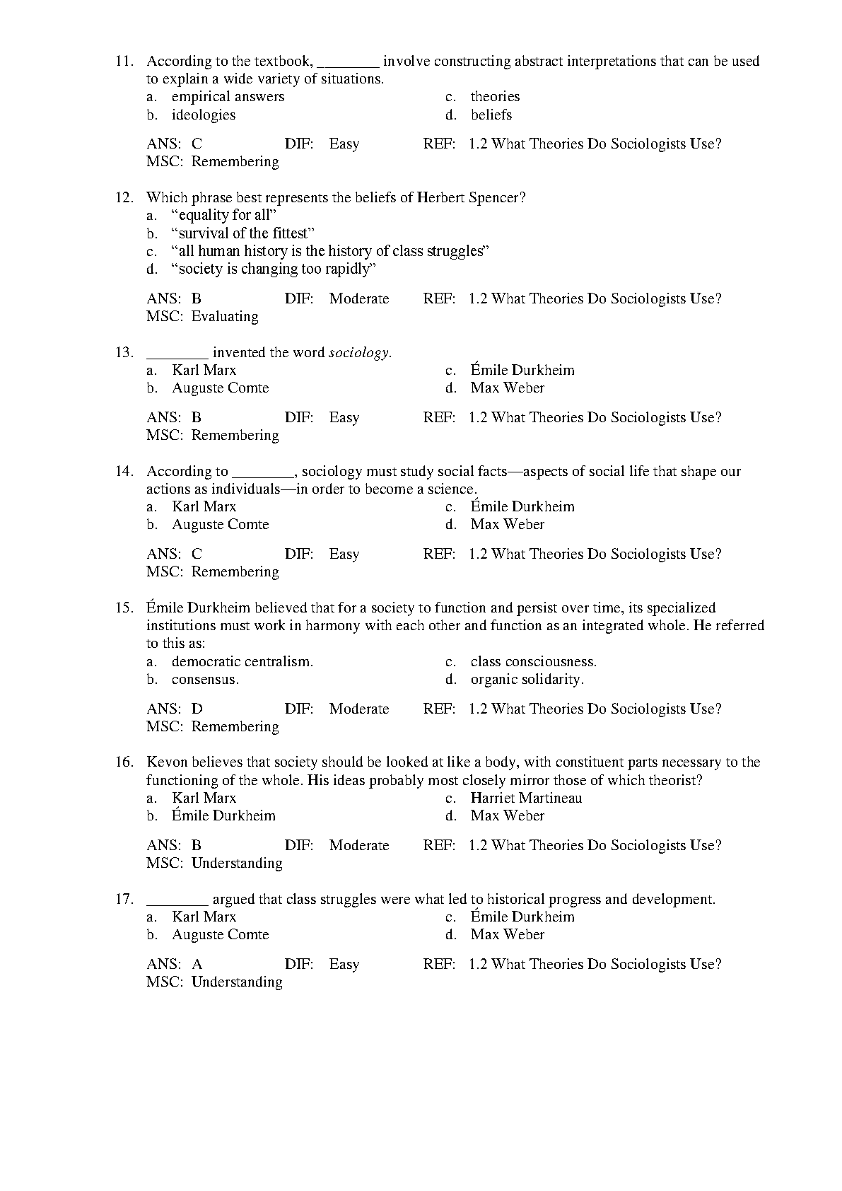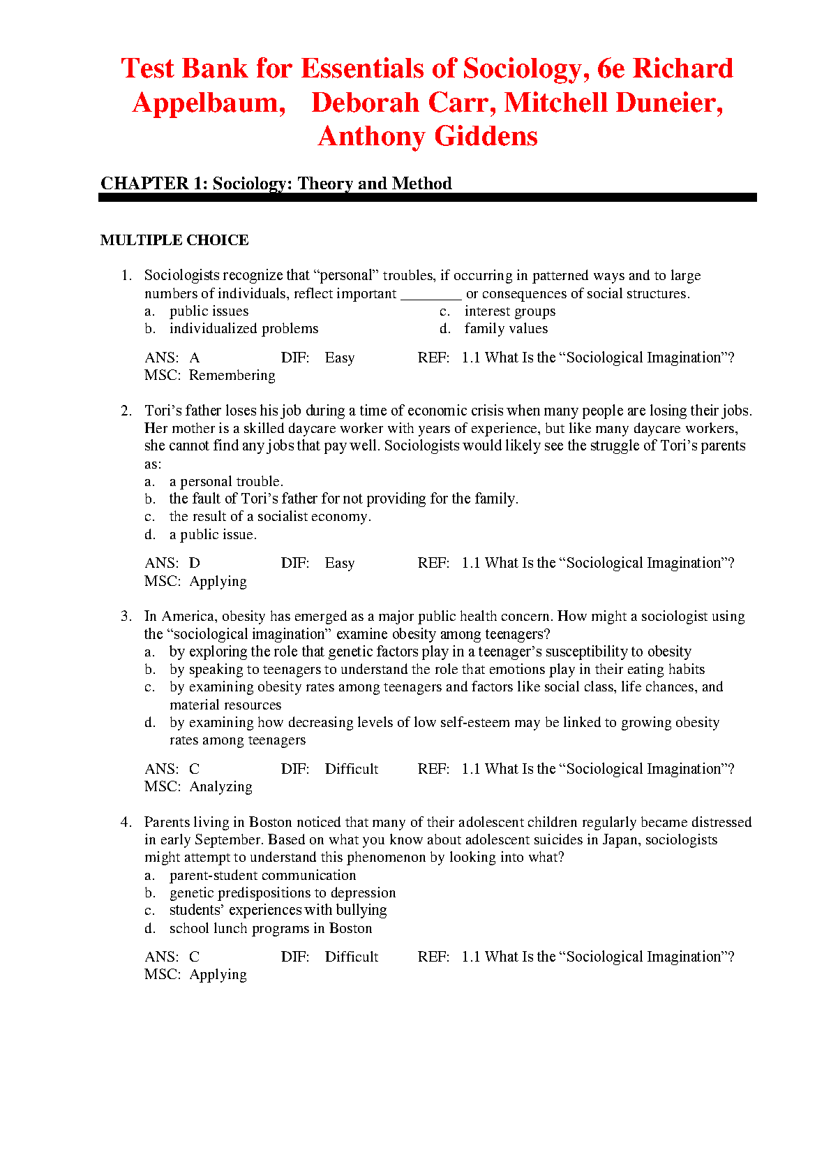 Essentials of Sociology, 6th Edition Test Bank: Richard Appelbaum, Deborah Carr, Mitchell Duneier, Anthony Giddens
