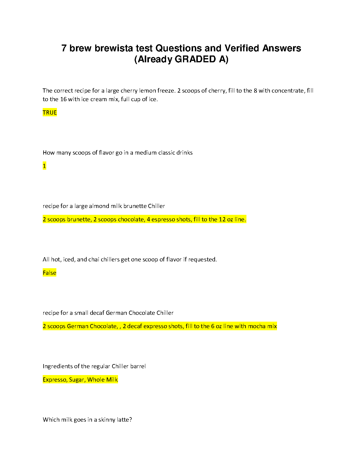 Brewista Test Questions and Verified Answers: A 2024-2025 Edition Guide for First-Time Exam Success