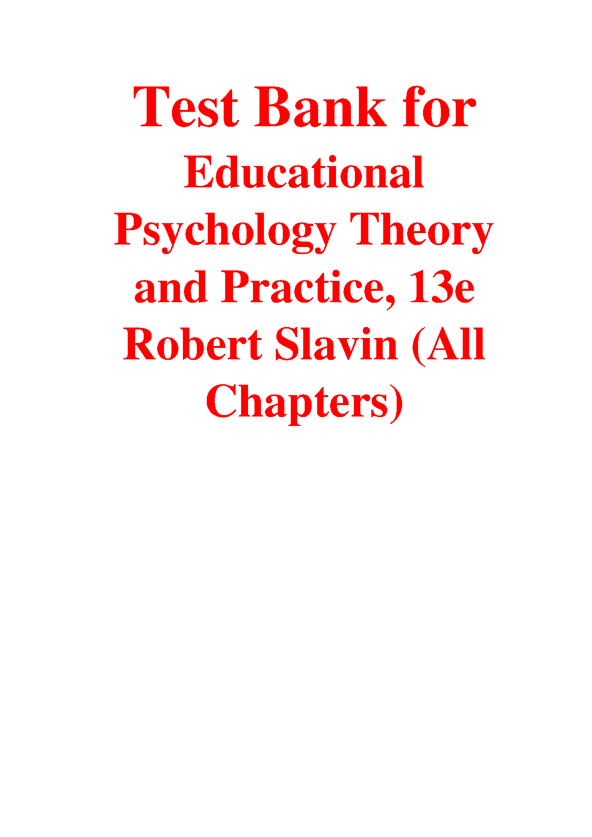 Test Bank for Educational Psychology Theory and Practice, 13th Edition by Robert Slavin