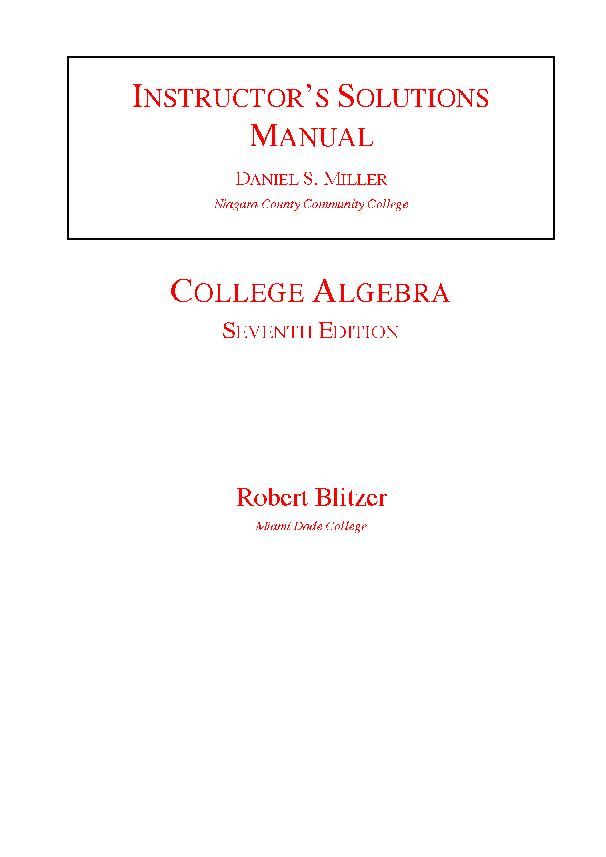 College Algebra Seventh Edition Instructor's Solutions Manual by Daniel S. Miller and Robert Blitzer