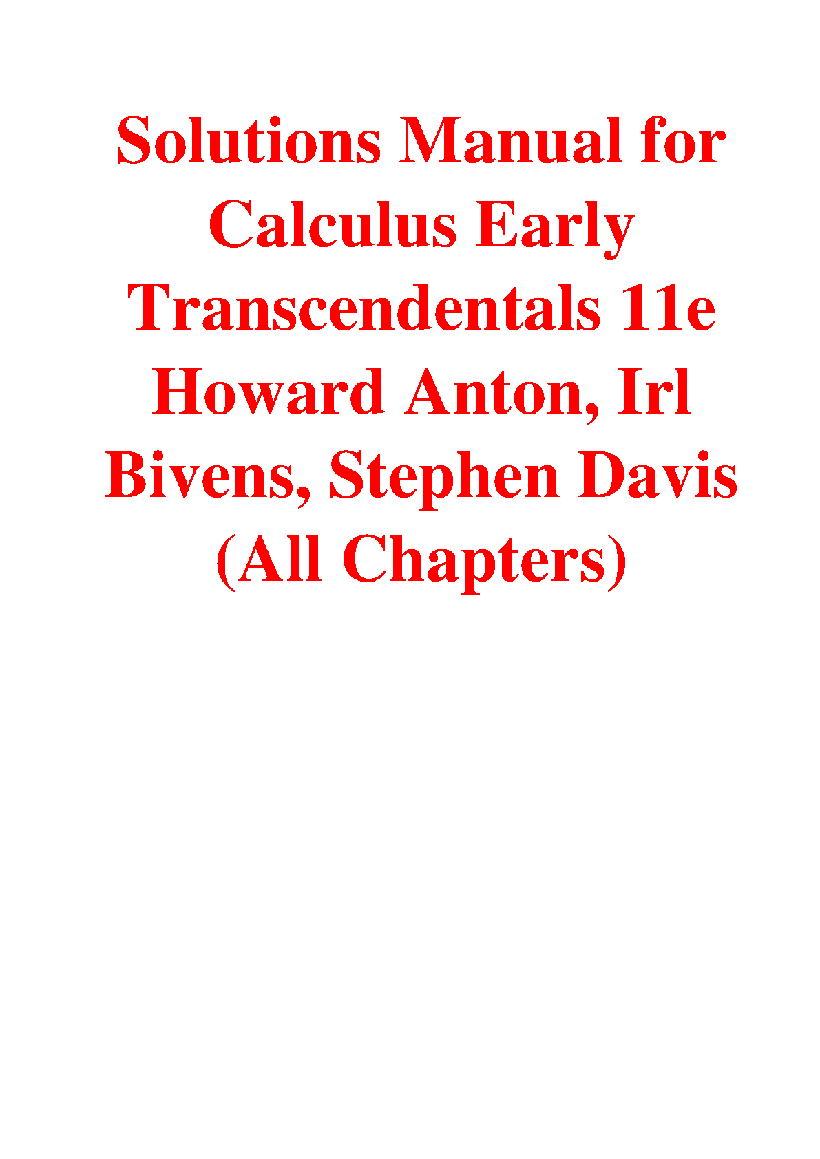 Solutions Manual for Calculus Early Transcendentals 11e by Howard Anton, Irl Bivens, and Stephen Davis