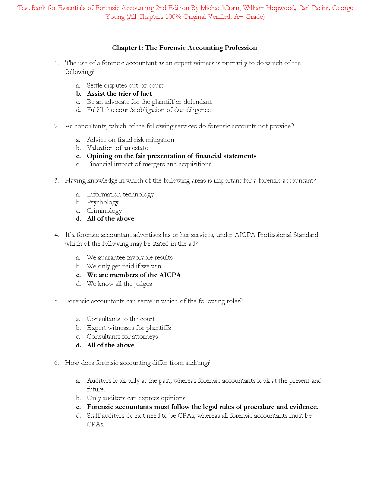Essentials of Forensic Accounting 2nd Edition Test Bank by Michael Crain, William Hopwood, Carl Pacini, and George Young