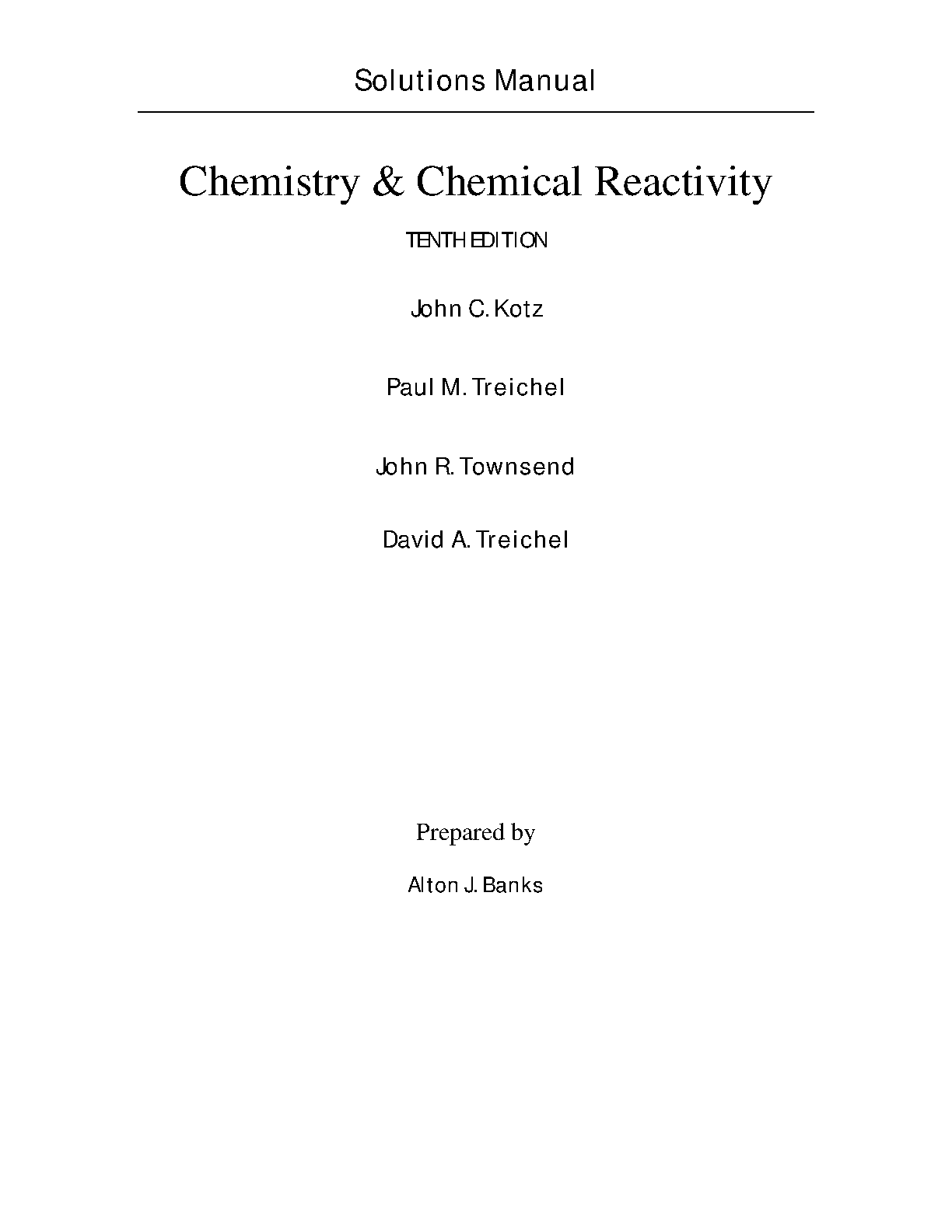 Chemistry & Chemical Reactivity 10th Edition Solutions Manual by John C. Kotz, Paul M. Treichel, John R. Townsend, and David A. Treichel