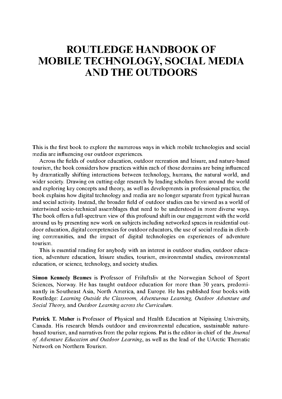 Routledge Handbook of Mobile Technology, Social Media and the Outdoors (1st Edition) by Simon Kennedy Beames and Patrick T. Maher
