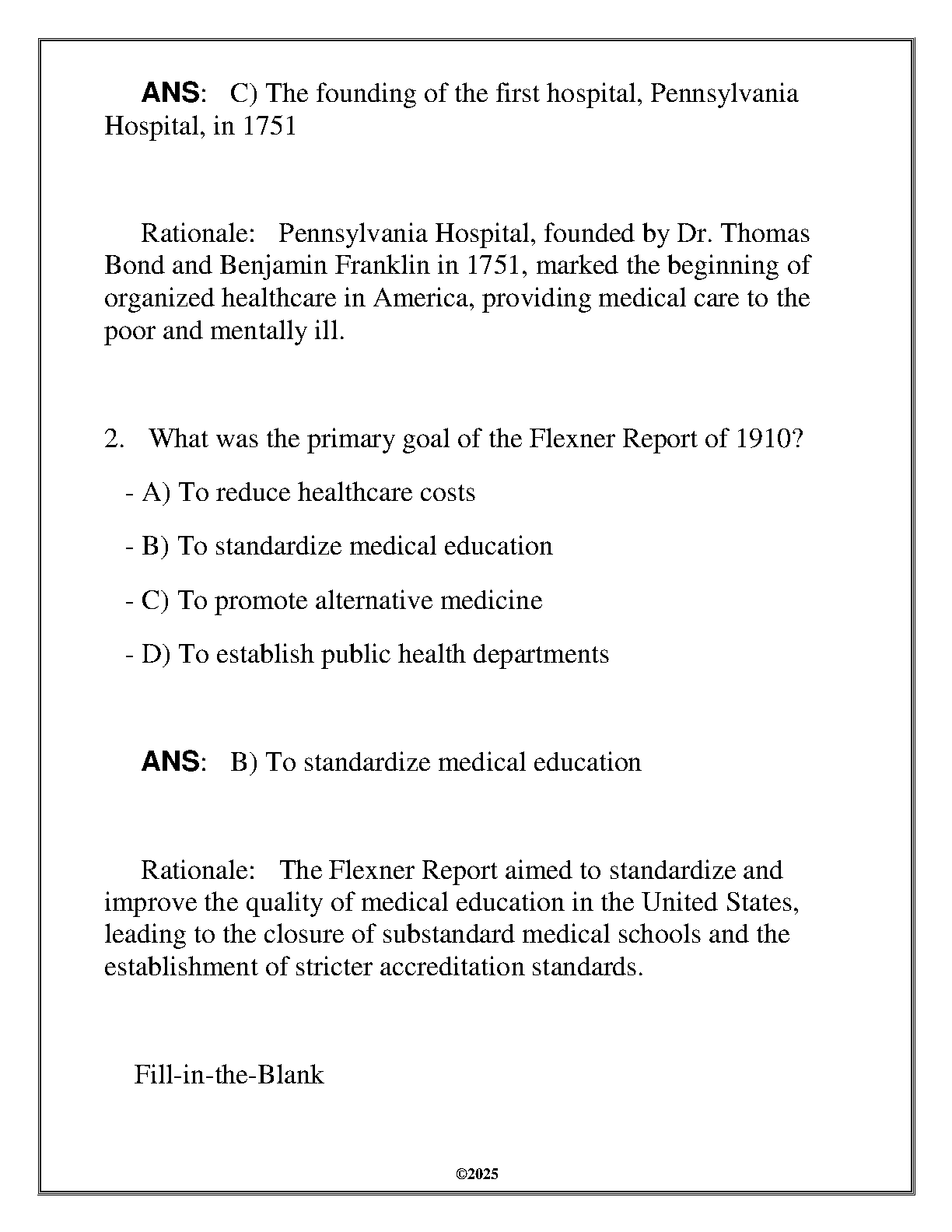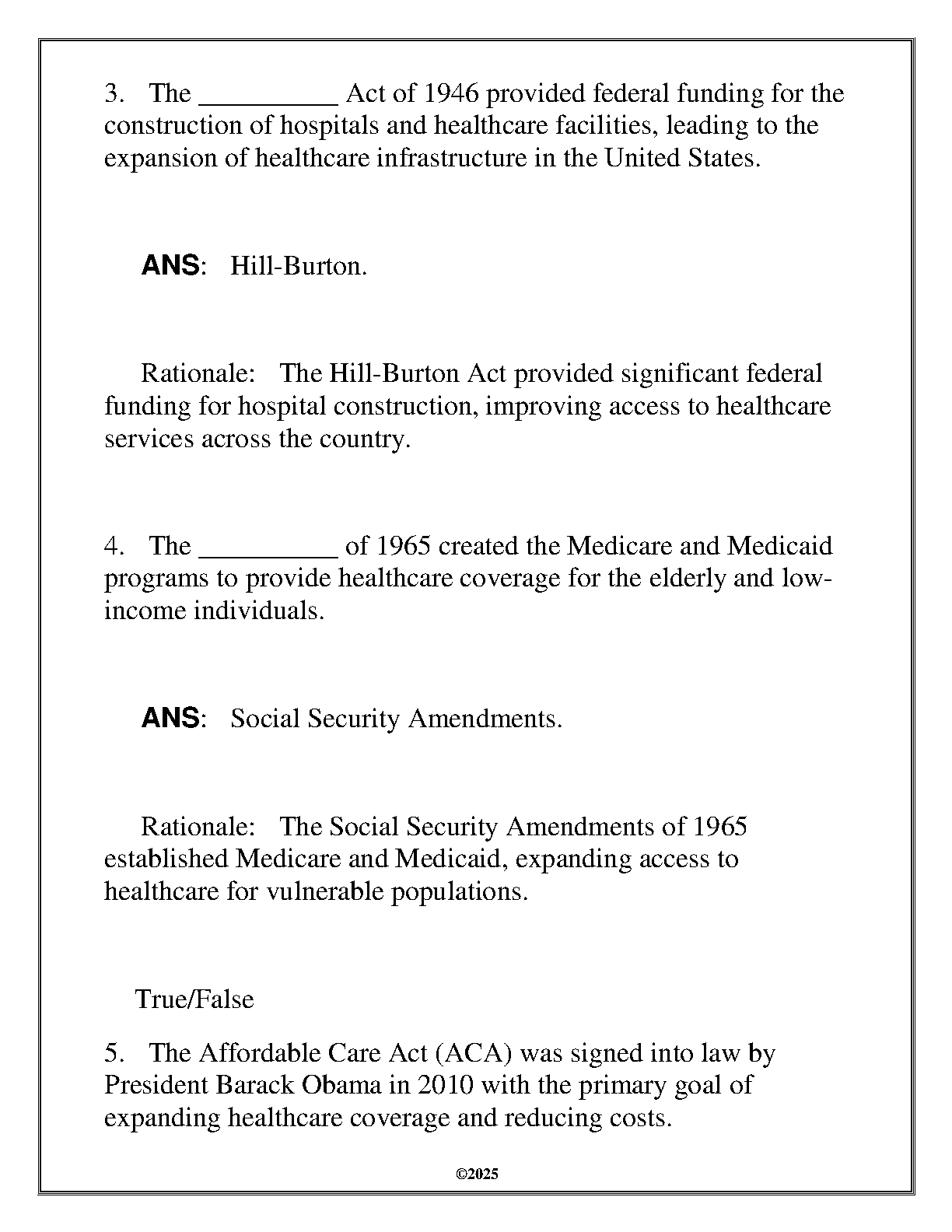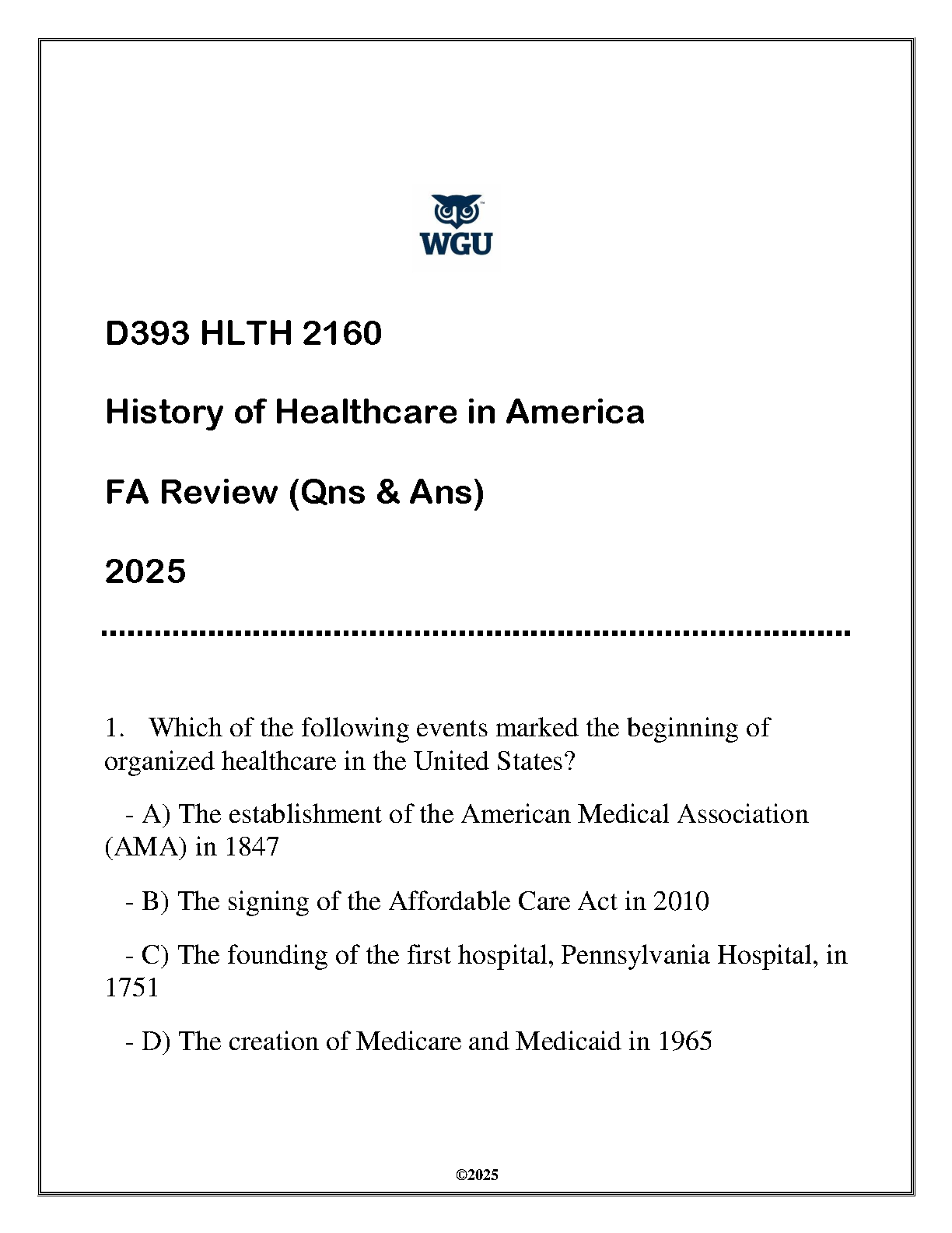 WGU HLTH 2160 History of Healthcare in America: 2025 Edition FA Review Questions and Answers