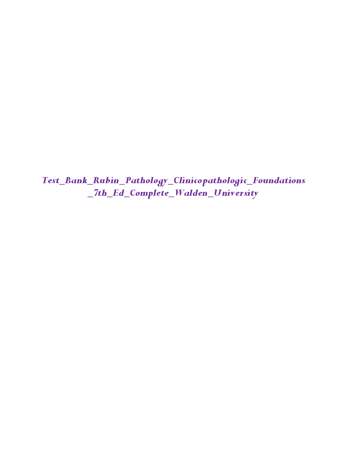 Ace your Pathology exams with this complete 7th edition test bank for Rubin's Pathology: ClinicoPathologic Foundations. This resource, designed for Walden University students, offers comprehensive coverage to help you master the material and achieve exam success on your first try. Avoid resits and boost your confidence with this invaluable study aid.