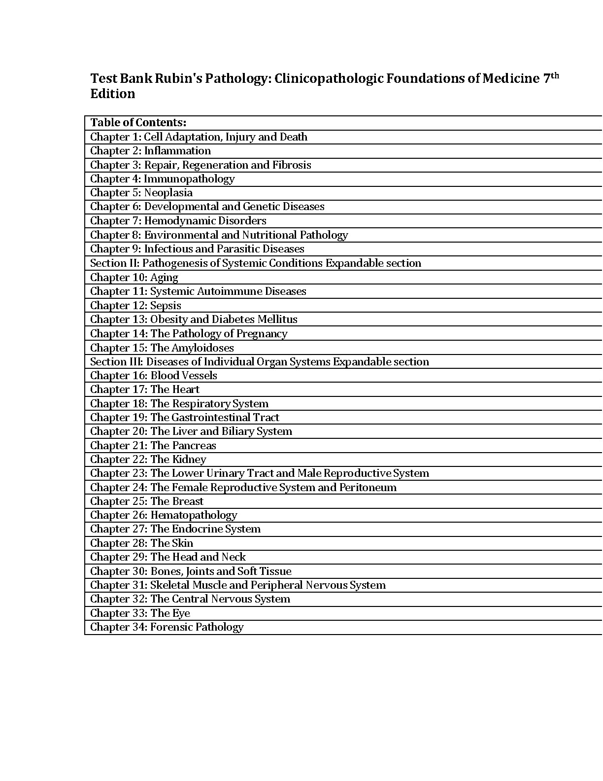 Rubin's Pathology: ClinicoPathologic Foundations, 7th Edition Test Bank by Raphael Rubin, David H. et al.