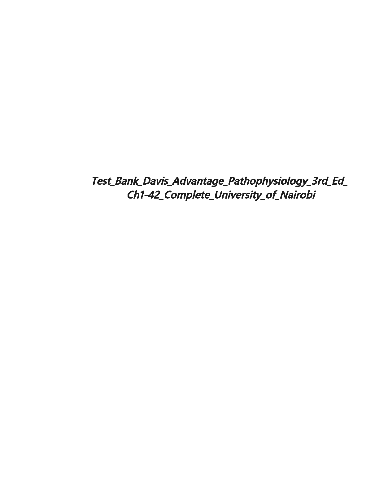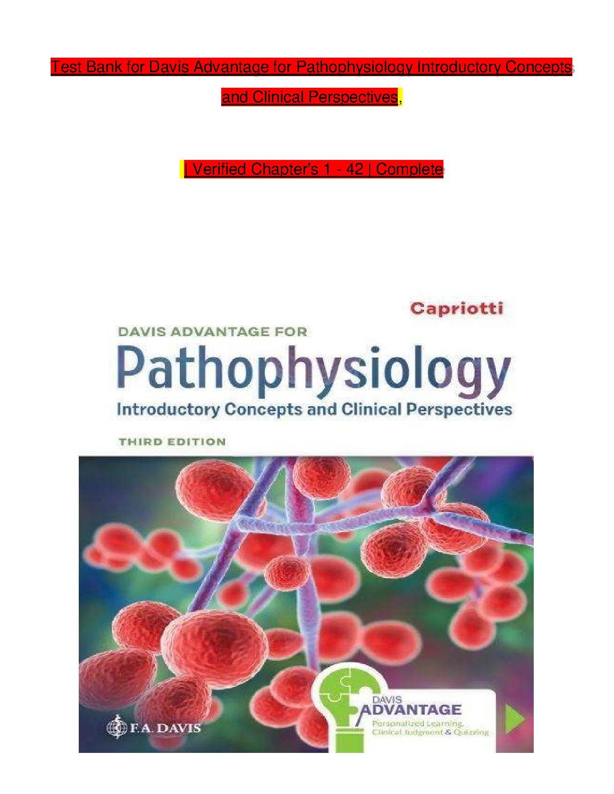 Ace your Pathophysiology exams with this complete test bank for Davis Advantage Pathophysiology, 3rd Edition by Kathryn A. McCance and Sue E. Huether. This resource covers chapters 1-42, providing comprehensive coverage to help you achieve exam success on your first try.