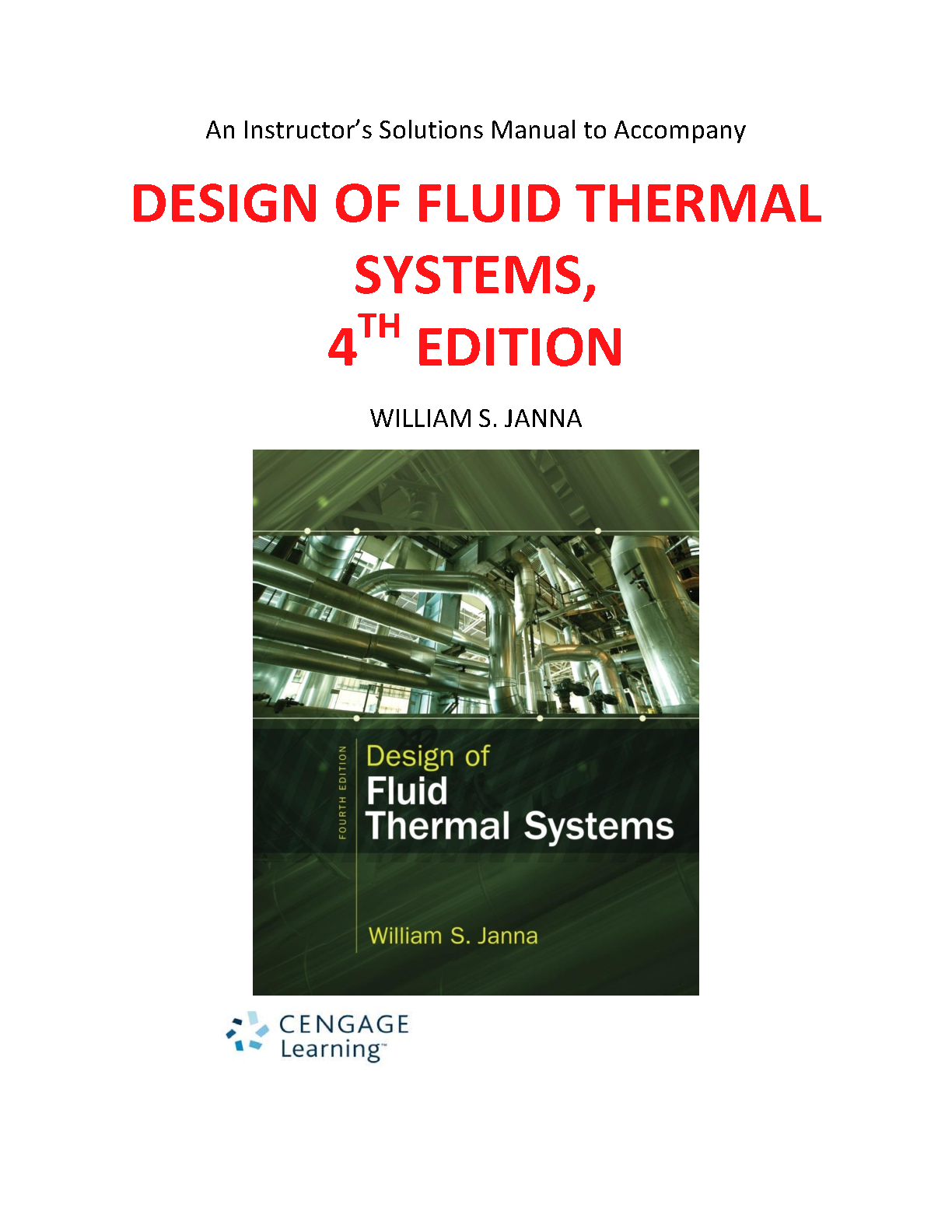 Design of Fluid Thermal Systems, 4th Edition Instructor's Solutions Manual by William S. Janna