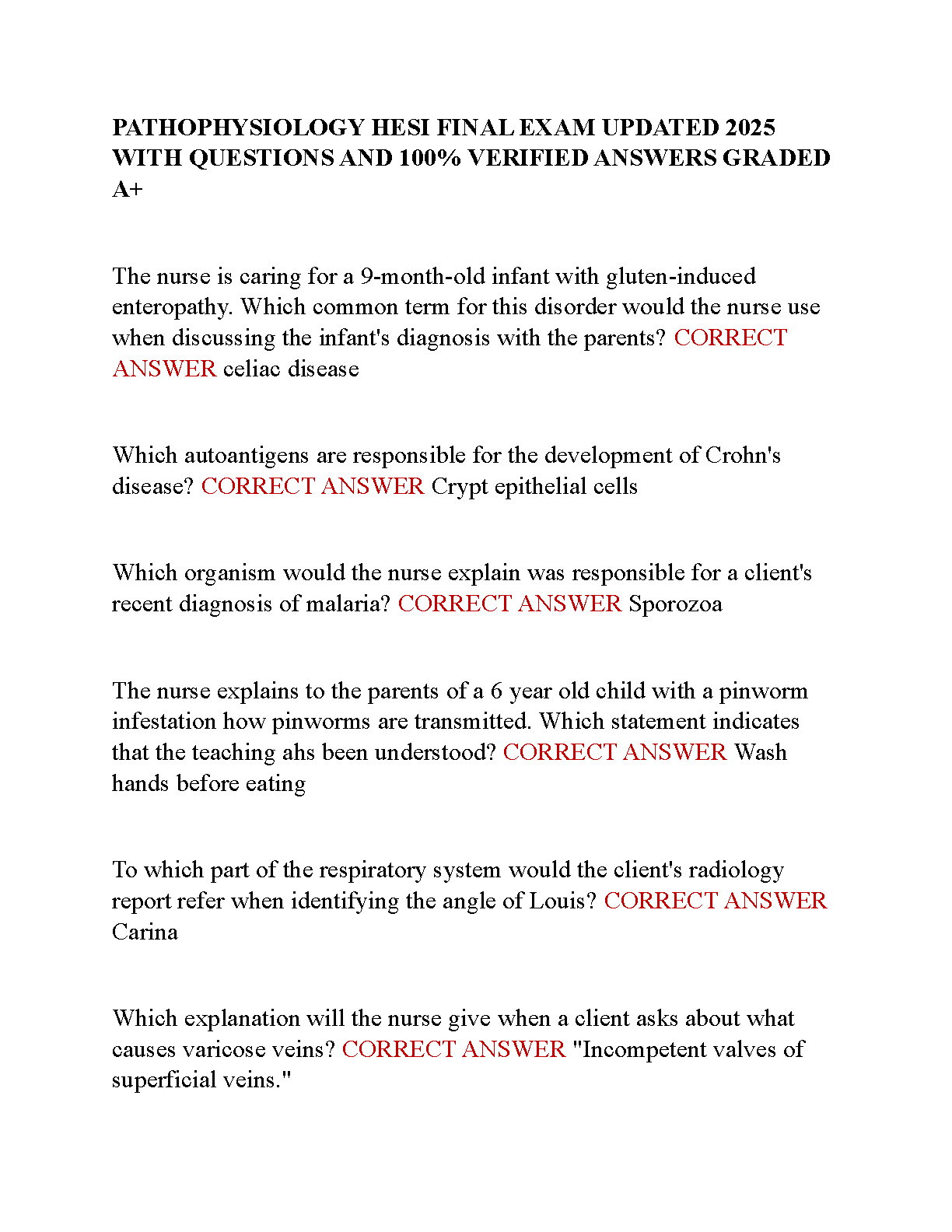 Pathophysiology HESI Final Exam 2025: Questions and 100% Verified Answers Graded by [Author Name if available online, otherwise remove this part]