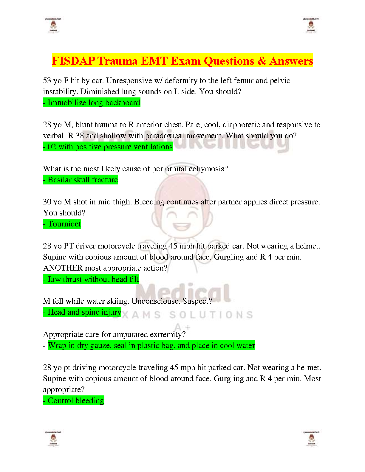 FISDAP Trauma EMT Exam Questions & Answers: A Comprehensive Guide for First-Attempt Success in 2024/2025