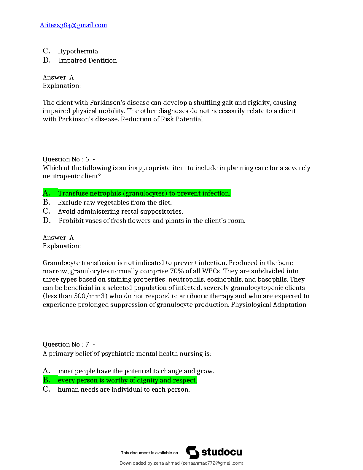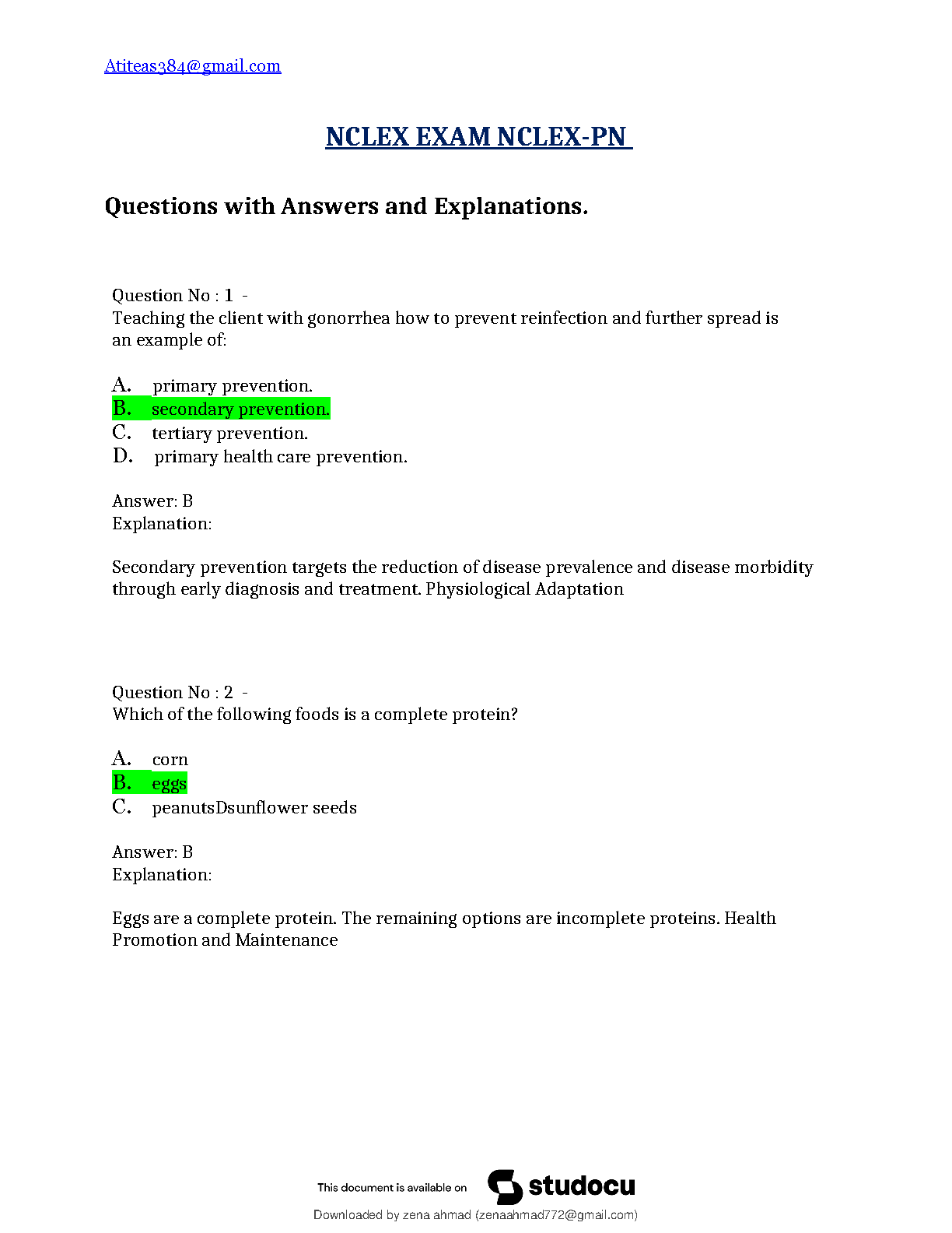 NCLEX-PN Exam Questions with Answers and Explanations by Zena Ahmad