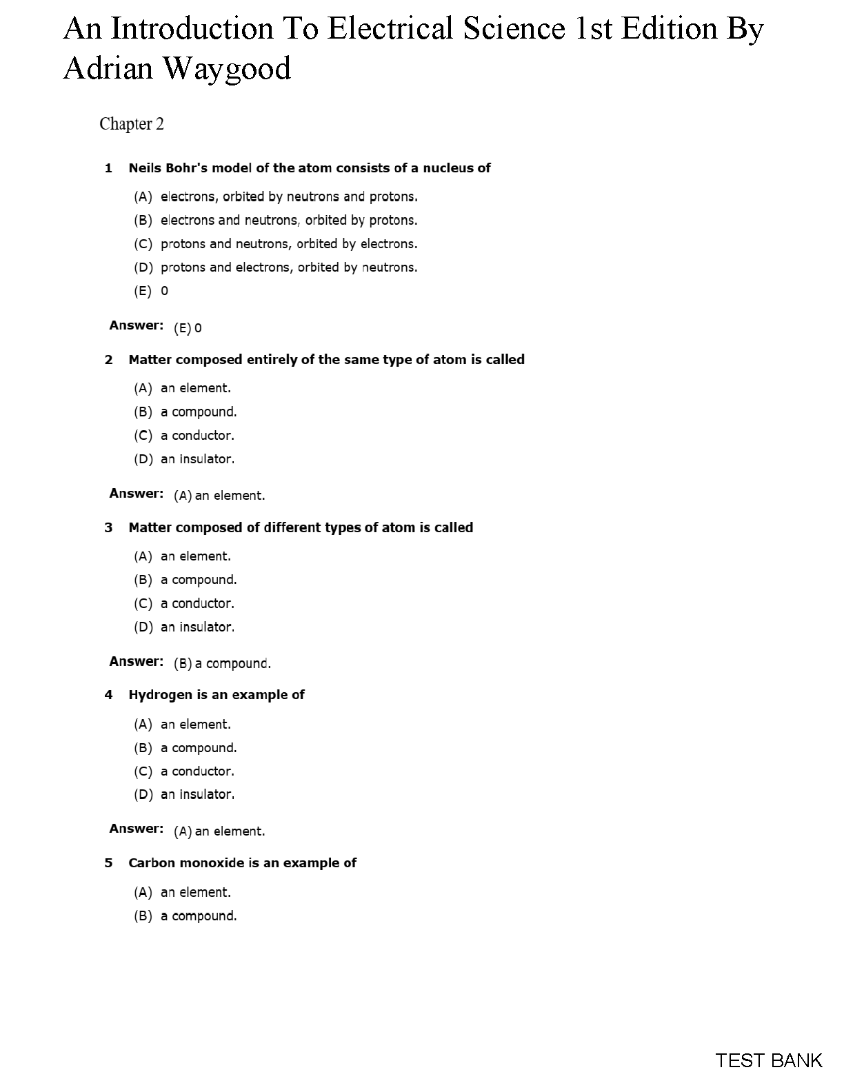 Test Bank for An Introduction to Electrical Science by Adrian Waygood