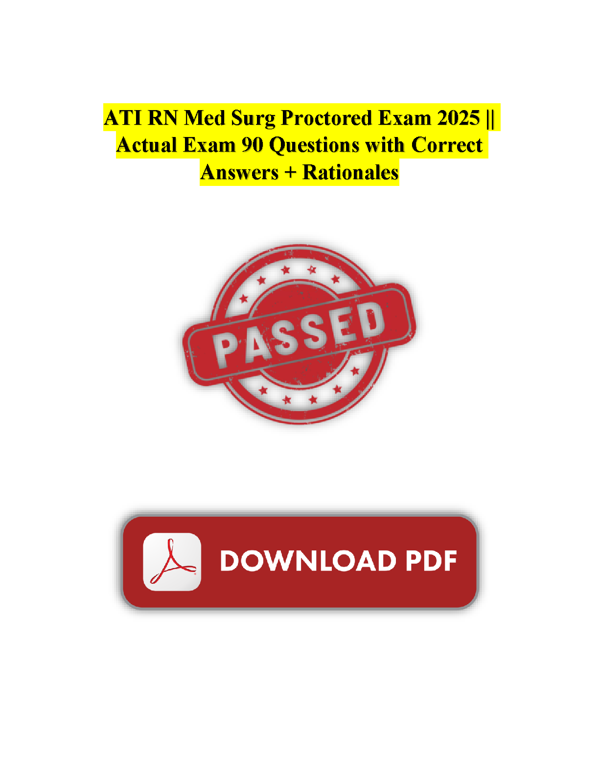 ATI RN Med Surg Proctored Exam 2025: 90 Questions with Correct Answers and Rationales by Assessment Technologies Institute
