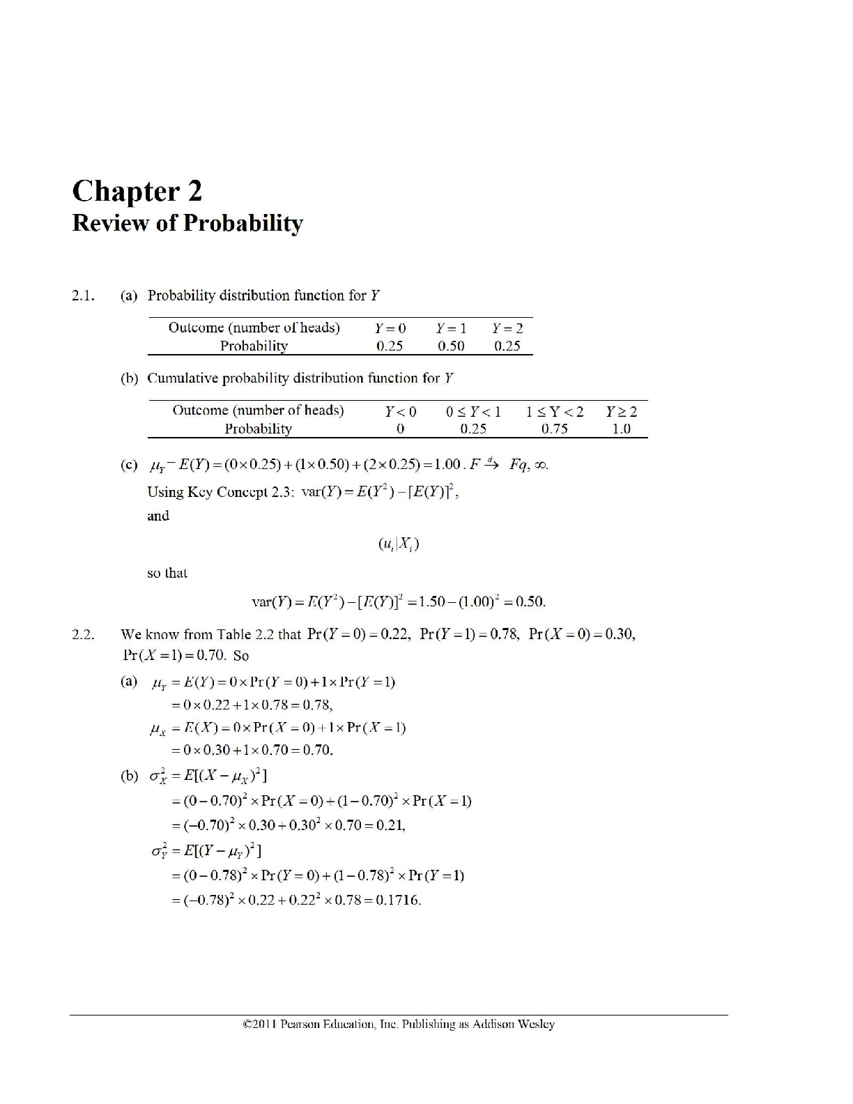 Introduction to Econometrics 3rd Edition by James H. Stock and Mark W. Watson: Solutions to End-of-Chapter Exercises