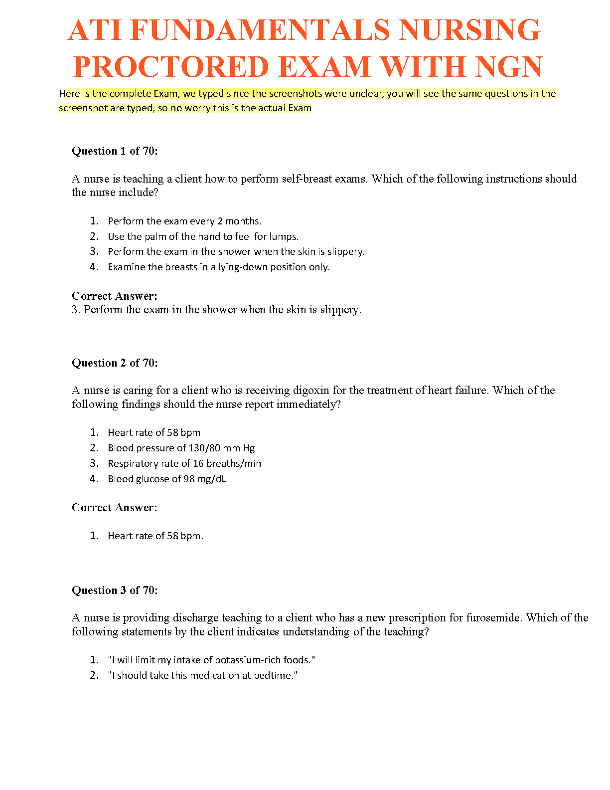 ATI Fundamentals Nursing Proctored Exam with NGN: 2024-2025 Edition for First-Attempt Exam Success