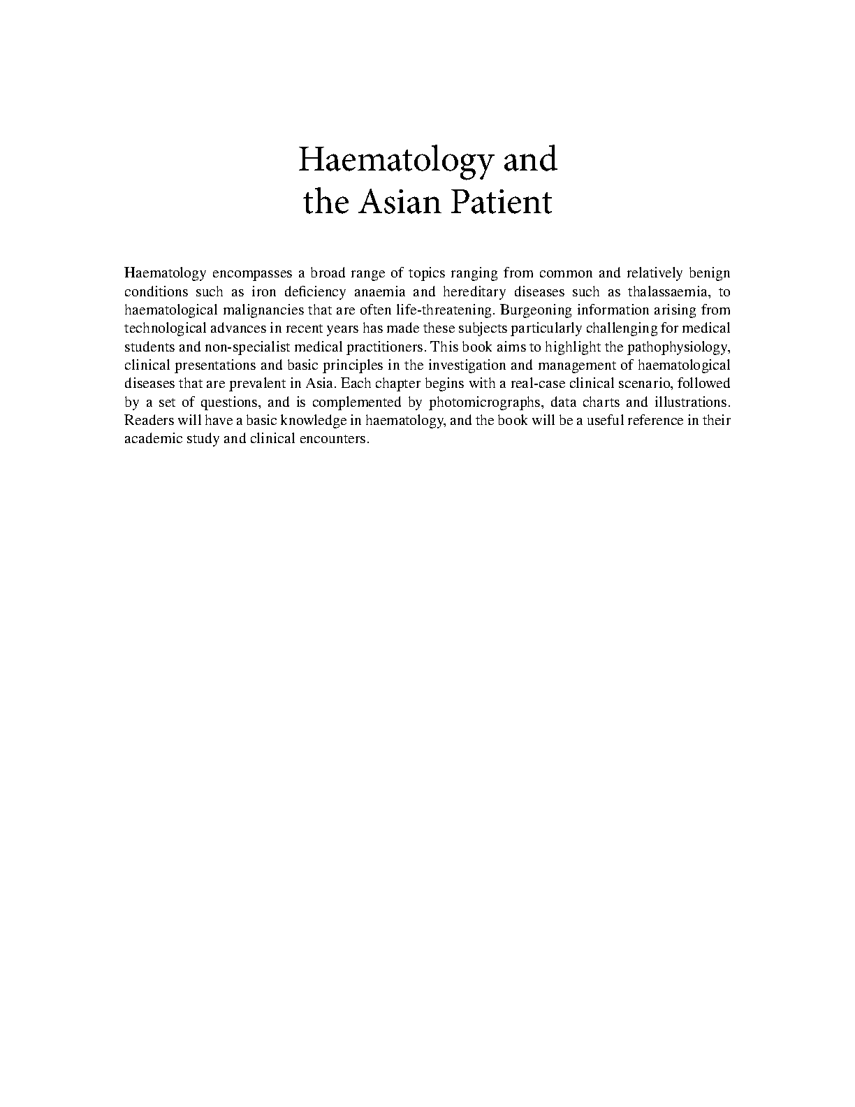 Haematology and the Asian Patient: 51 Clinical Cases by Anskar Y.H. Leung and Edmond S.K. Ma