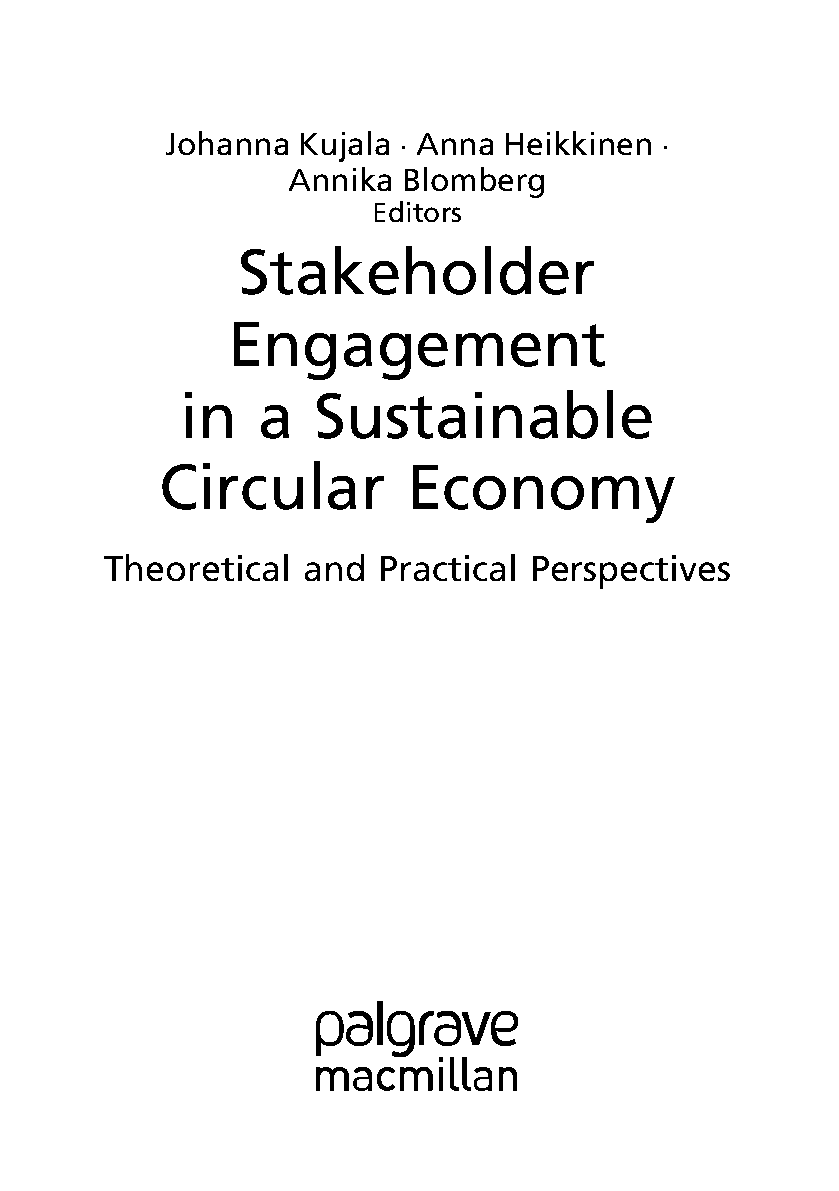 Stakeholder Engagement in a Sustainable Circular Economy: Theoretical and Practical Perspectives - Edited by Johanna Kujala, Anna Heikkinen, and Annika Blomberg