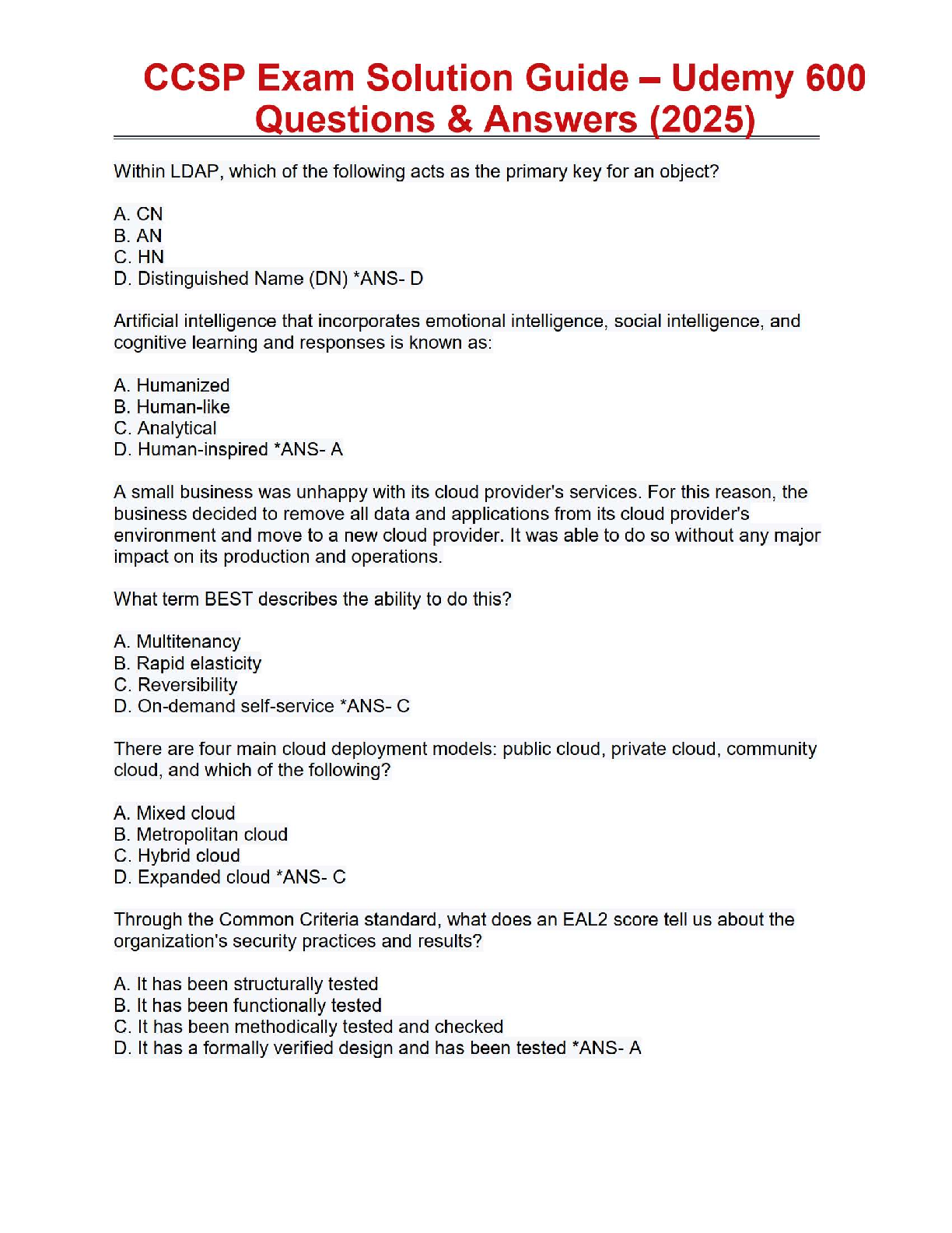 CCSP Exam Solution Guide 2025 Edition: 600 Questions & Answers by Udemy