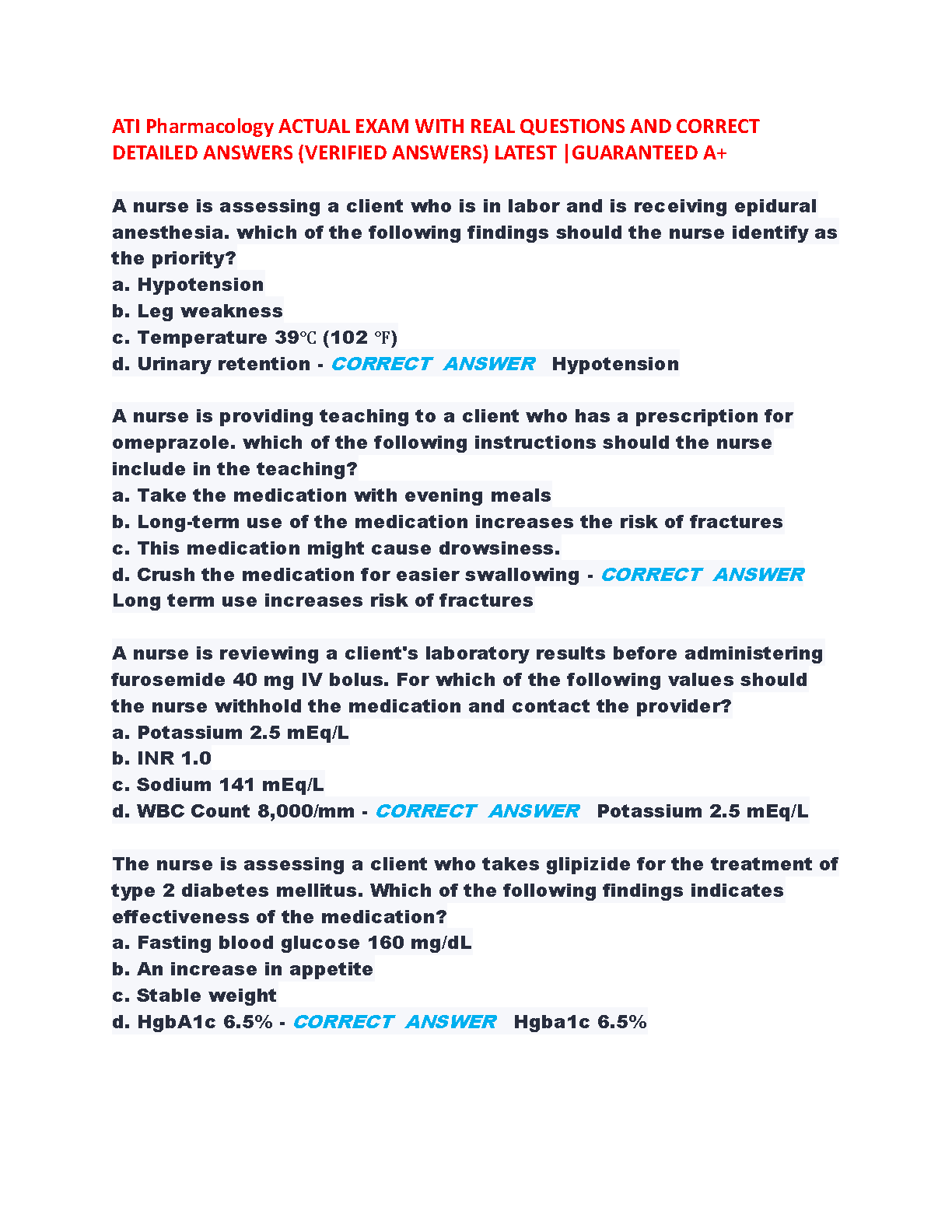 HackedExams is the website to download all resources for students who want to pass their exams on their first attempt. Our website offers all exam materials, including practice questions with answers, test banks, study guides, notes, summaries, and more for nursing, computer science, biology, psychology, law, and others. With resources from popular exam bodies like ATI, AQA, OCR, Edexcel, Comptia, Azure, and more, you'll easily find everything you need to get certified. Avoid resitting exams; trust in HackedExams.com to give you the resources to pass on your first attempt. Get access to exams from 2019 to 2023 and start your path to success today. "Avoid resits, get certified within days, and pass your exams on your first attempt."