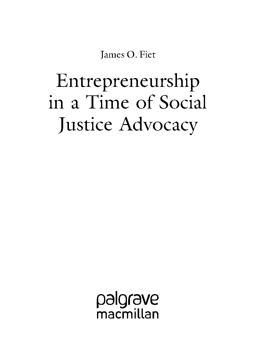 Entrepreneurship in a Time of Social Justice Advocacy by James O. Fiet (1st Edition)