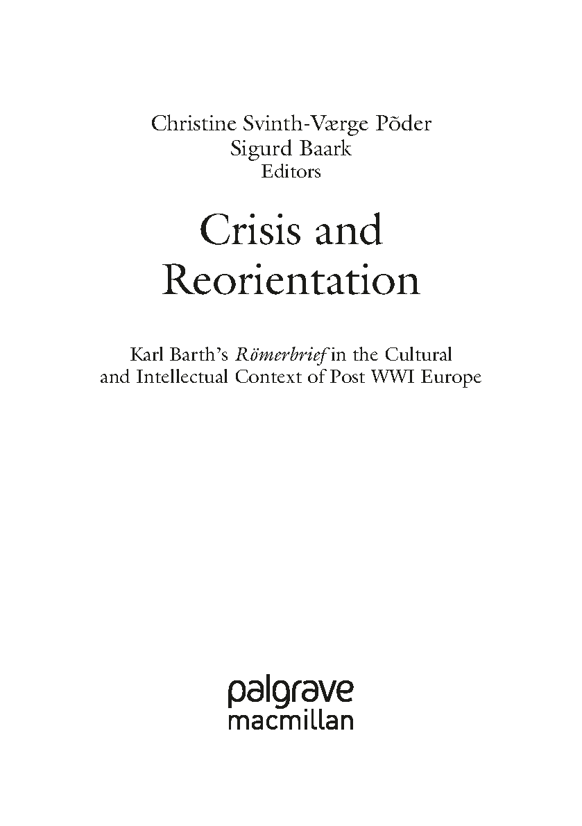 Crisis and Reorientation: Karl Barth's Römerbrief in the Cultural and Intellectual Context of Post WWI Europe (Edited by Christine Svinth-Værge Põder & Sigurd Baark)