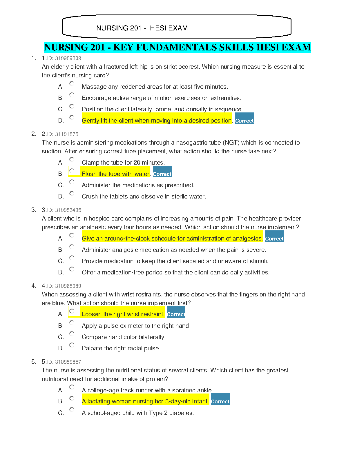 Nursing 201 - Key Fundamentals Skills HESI Exam: A 2024/2025 Guide for First-Attempt Success by [Author Names if found online, otherwise leave blank]