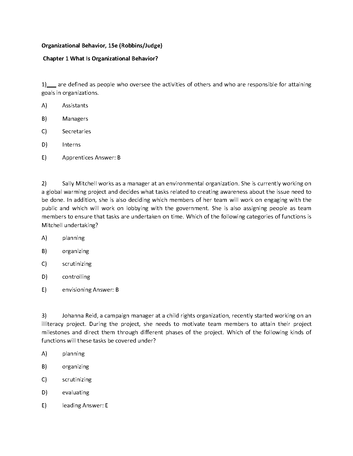 Essentials of Organizational Behavior, 15th Edition, Global Edition: Test Bank by Stephen P. Robbins and Timothy A. Judge