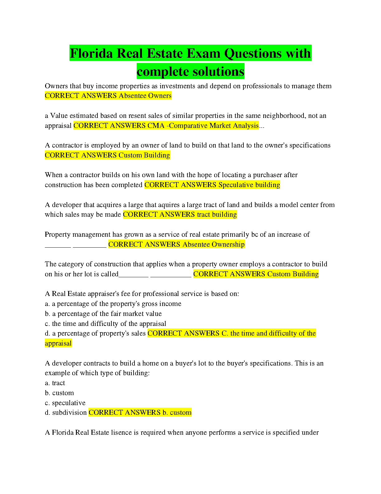 Ace your Florida Real Estate exam on the first try with this comprehensive question bank featuring complete solutions. Master key concepts, understand the material thoroughly, and boost your confidence. Perfect for exam preparation and avoiding resits.