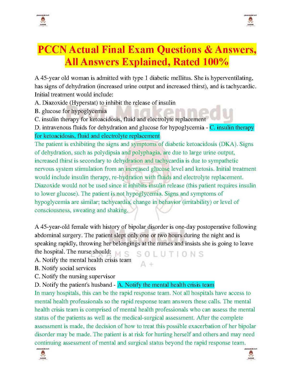 PCCN Actual Final Exam Questions & Answers 2024/2025: Pass Your Exams on the First Attempt