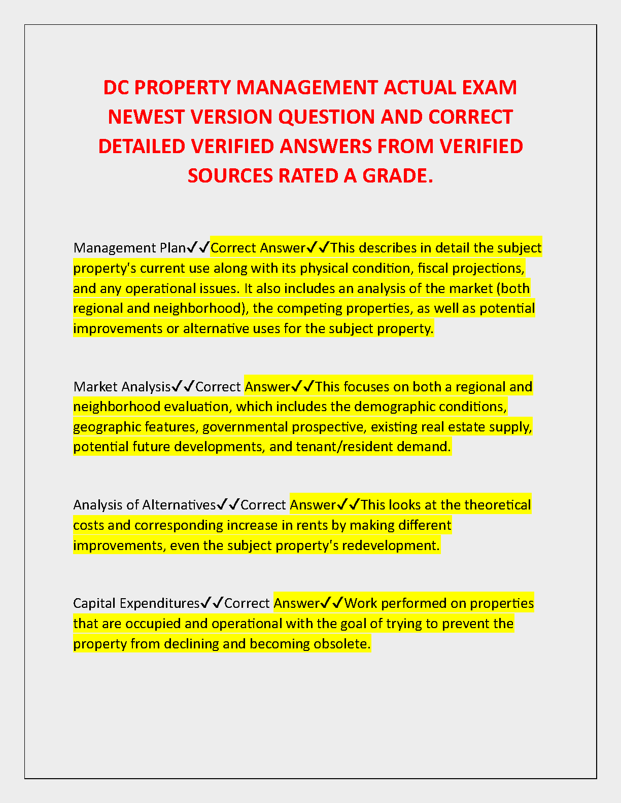 DC Property Management Actual Exam: Newest Version Questions and Answers by [Author Names]