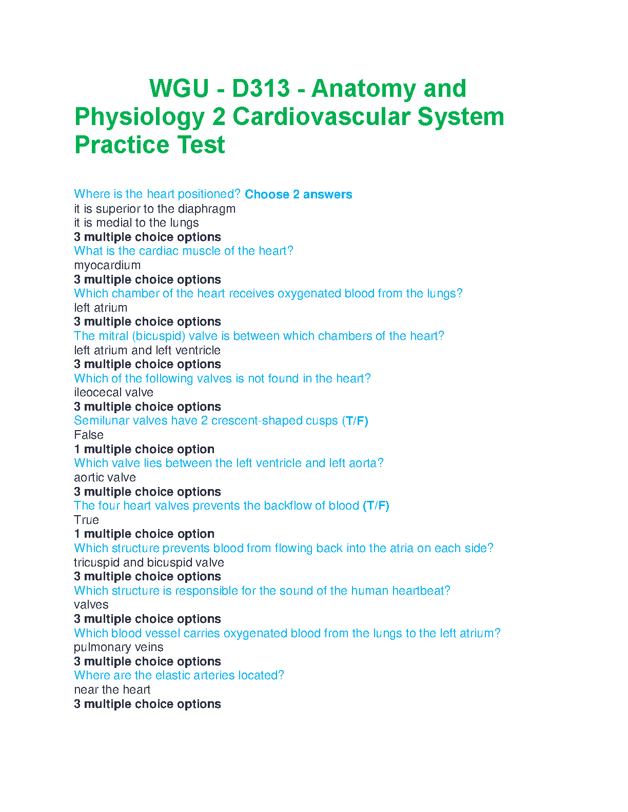 WGU D313 Anatomy and Physiology 2 Cardiovascular System Practice Test: Ace Your Exam in 2024/2025
