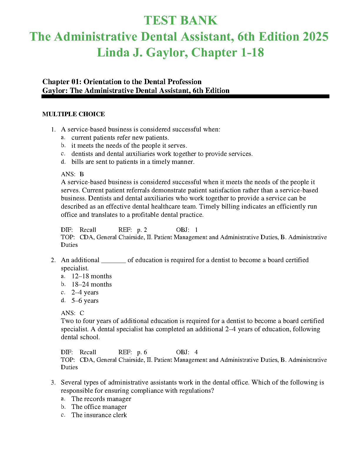 Test Bank for The Administrative Dental Assistant by Linda J. Gaylor