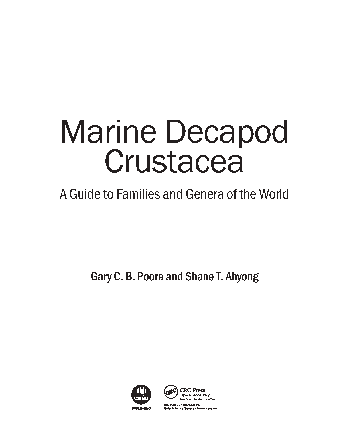 Marine Decapod Crustacea: A Guide to Families and Genera of the World by Gary C.B. Poore and Shane T. Ahyong