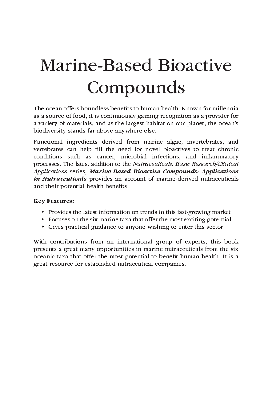 Marine-Based Bioactive Compounds: Applications in Nutraceuticals - Edited by Stephen T. Grabacki, Yashwant V. Pathak, and Nilesh H. Joshi