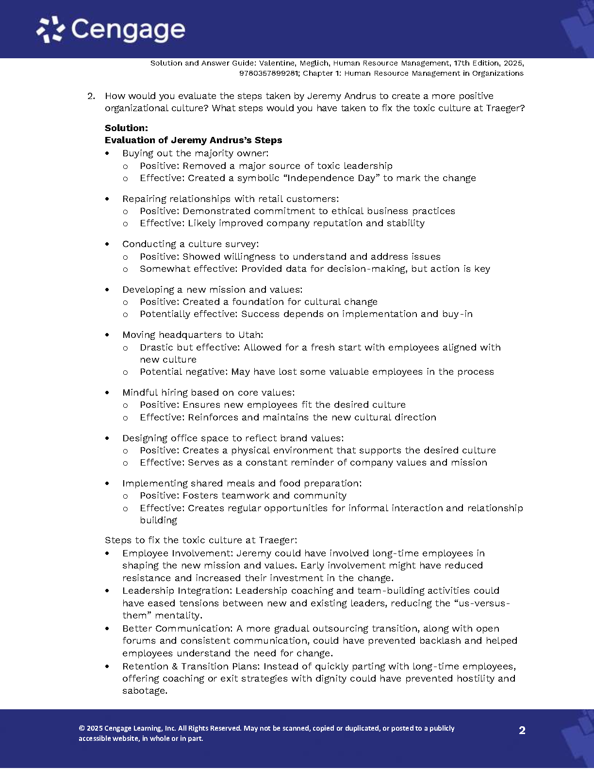 Solution and Answer Guide for Valentine & Meglich's Human Resource Management, 17th Edition, 2025