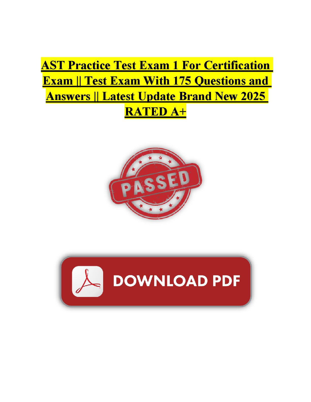 Pass your AST certification exam with confidence using this updated 2025 edition practice test. Featuring 175 questions and answers, this resource guarantees exam success, helping you avoid resits and achieve your certification goals. Download your PDF now!