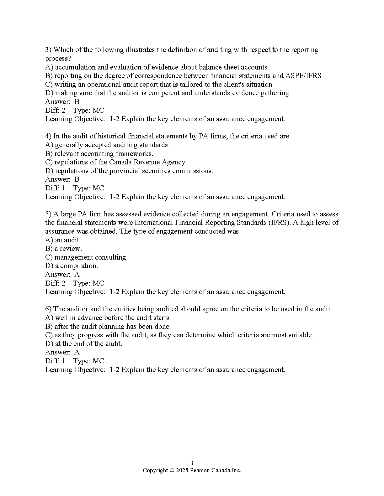 Ace your Auditing exams with this comprehensive test bank for Arens, Elder, and Beasley's Auditing: The Art and Science of Assurance Engagements, 16th Canadian Edition. This resource is designed to help students master the core concepts and achieve exam success on their first attempt, minimizing the need for resits. Prepare effectively and confidently with this invaluable study tool.