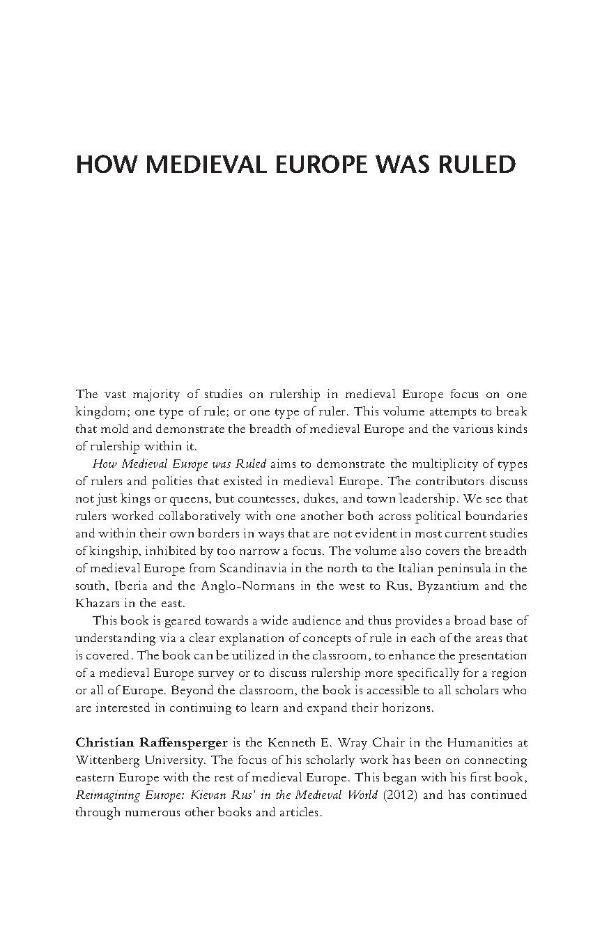 How Medieval Europe Was Ruled: Edited by Christian Raffensperger