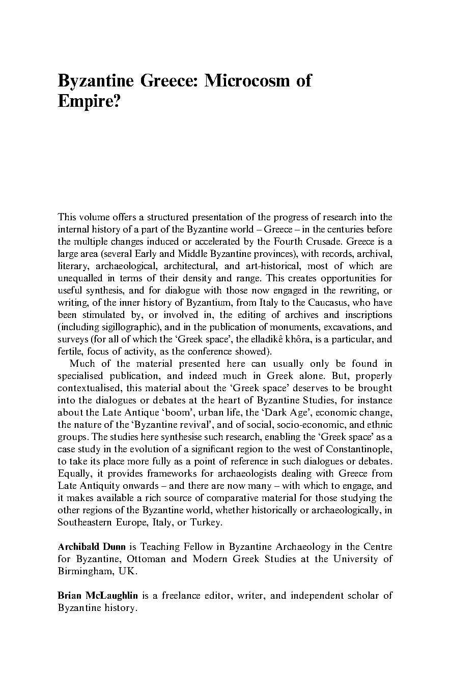 Byzantine Greece: Microcosm of Empire? (Edited by Archibald Dunn and Brian McLaughlin)