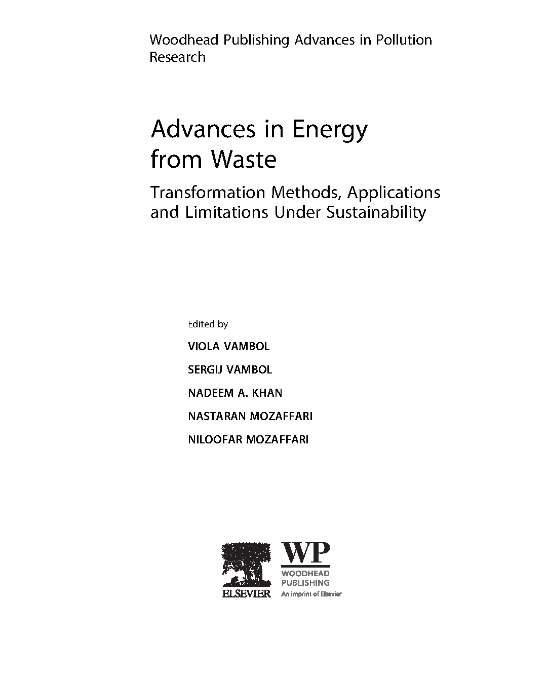 Advances in Energy from Waste: Transformation Methods, Applications and Limitations Under Sustainability - Edited by Viola Vambol, Sergij Vambol, Nadeem A. Khan, Nastaran Mozaffari, and Niloofar Mozaffari