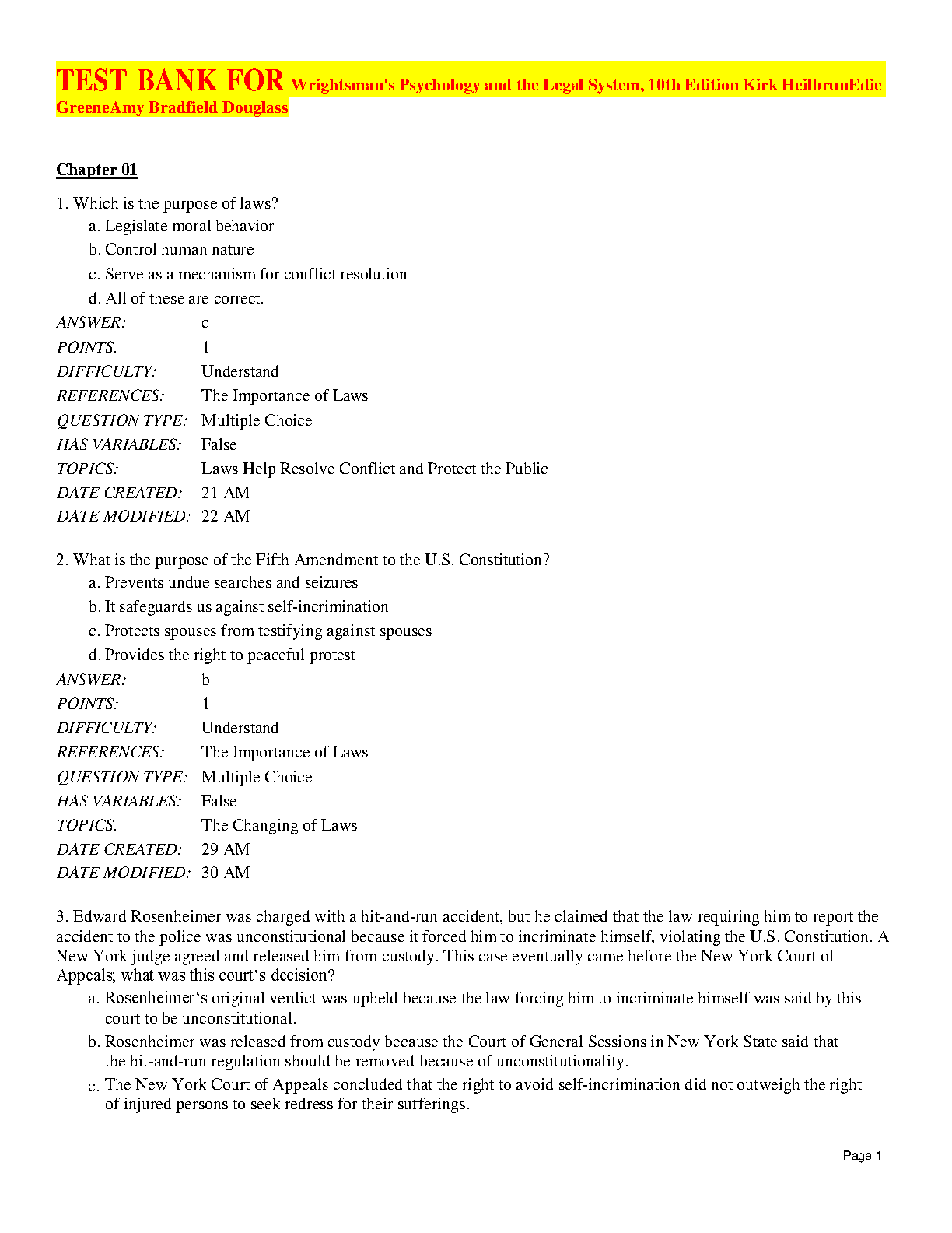 Test Bank for Wrightsman's Psychology and the Legal System, 10th Edition by Kirk Heilbrun, Amy Bradfield Douglass, and Greene