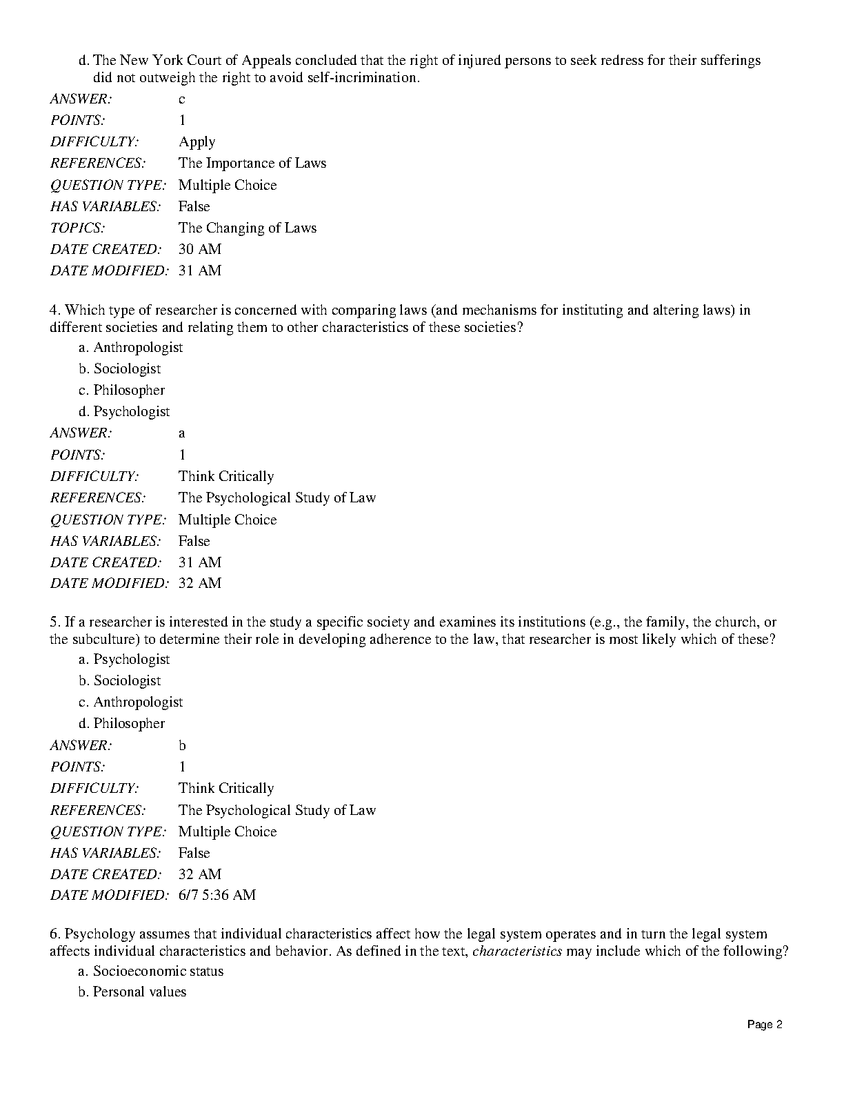 This Test Bank for Wrightsman's Psychology and the Legal System, 10th Edition, offers comprehensive questions and answers to help students master the material and ace their exams. It covers key concepts, providing a valuable resource for exam preparation and success.