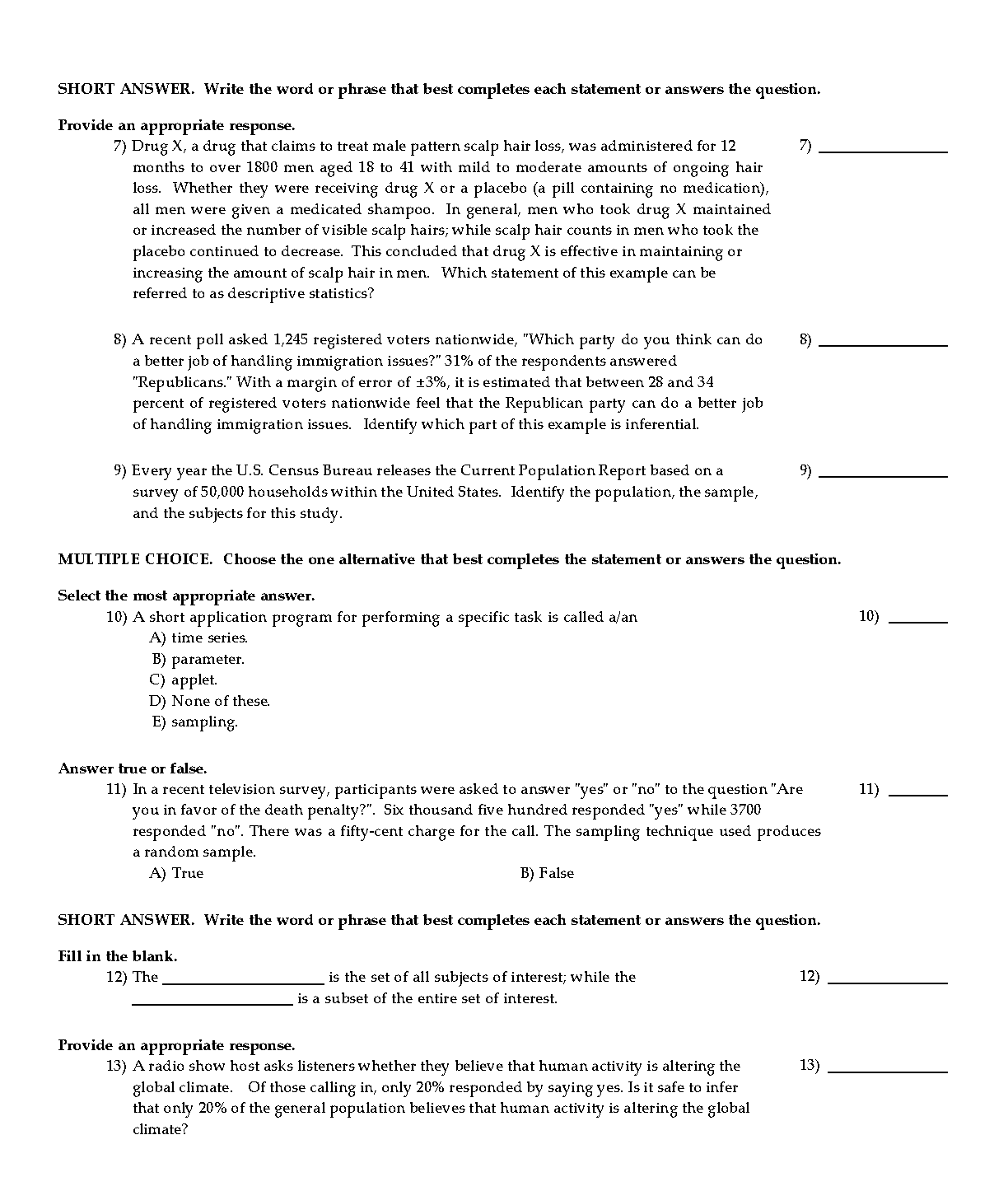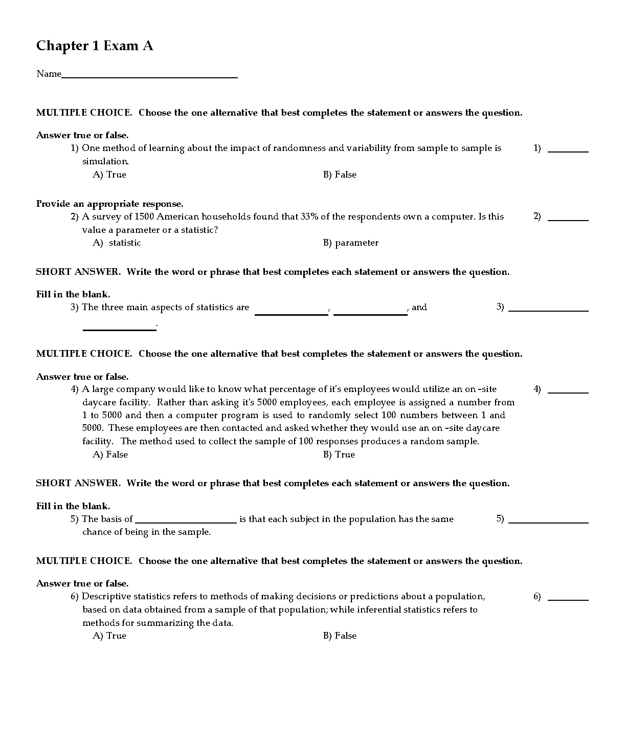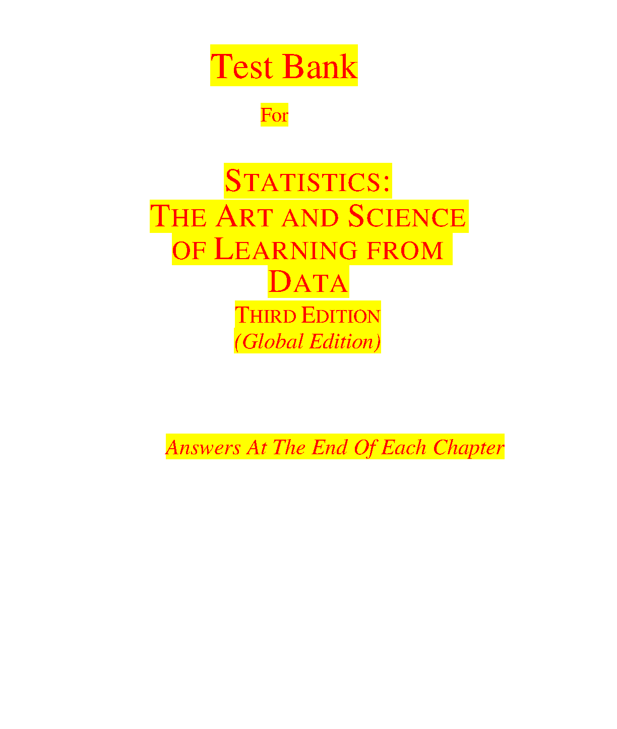 Test Bank for Statistics: The Art and Science of Learning from Data, 3rd Edition (Global Edition) by David M. Lane