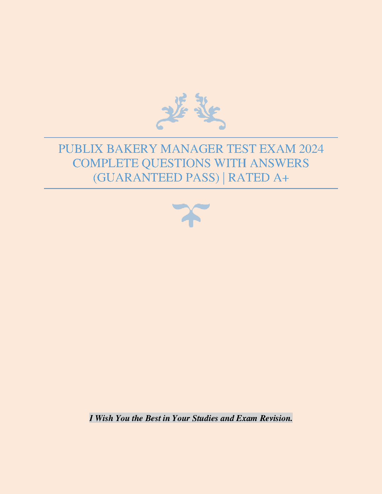 Publix Bakery Manager Test Exam 2024: Complete Questions & Answers for Guaranteed Success