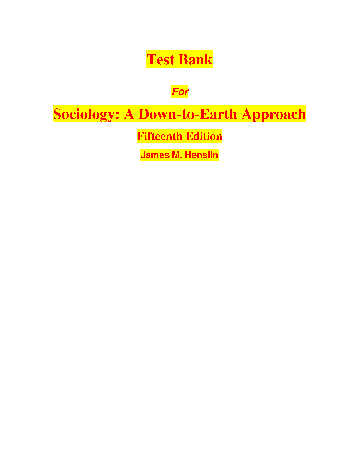 Sociology: A Down-to-Earth Approach, 15th Edition Test Bank by James M. Henslin