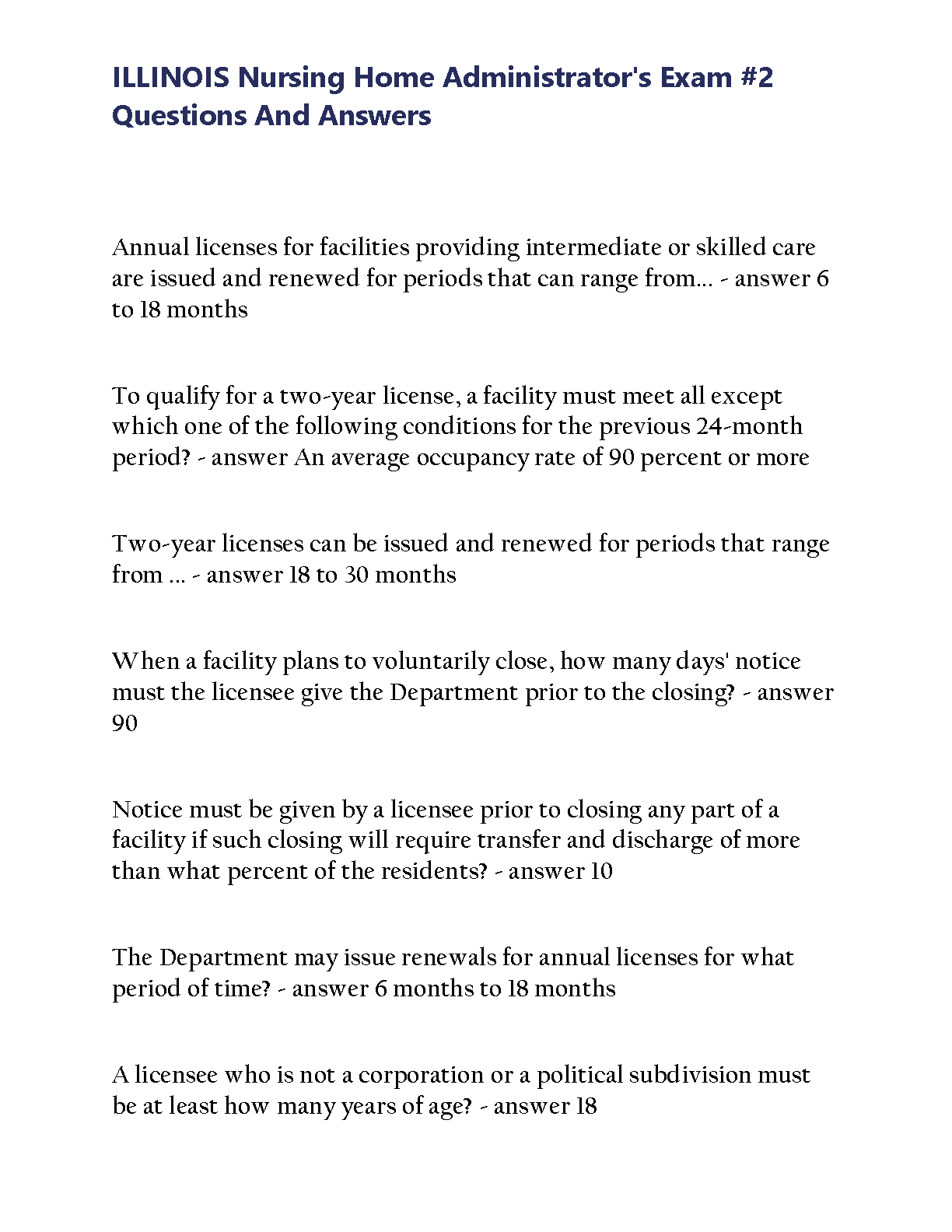 Illinois Nursing Home Administrator's Exam #2: Questions and Answers - 2024/2025 Edition