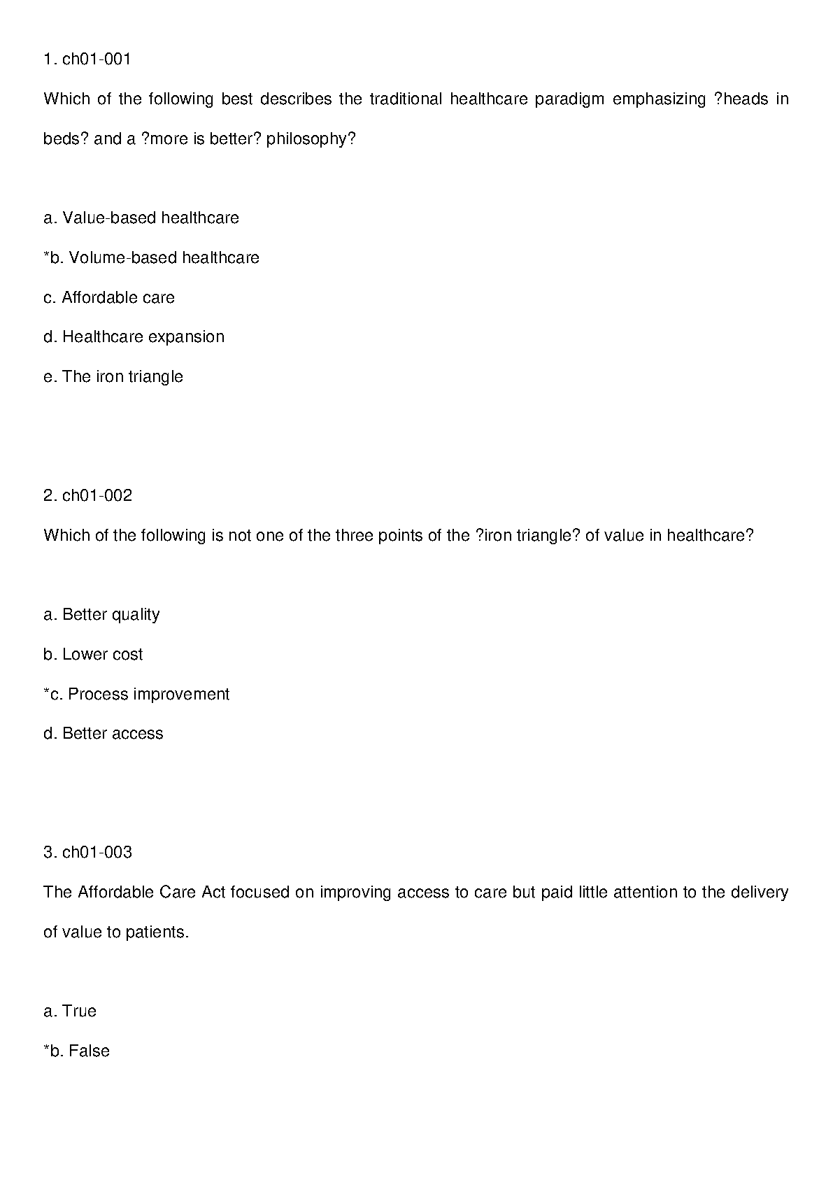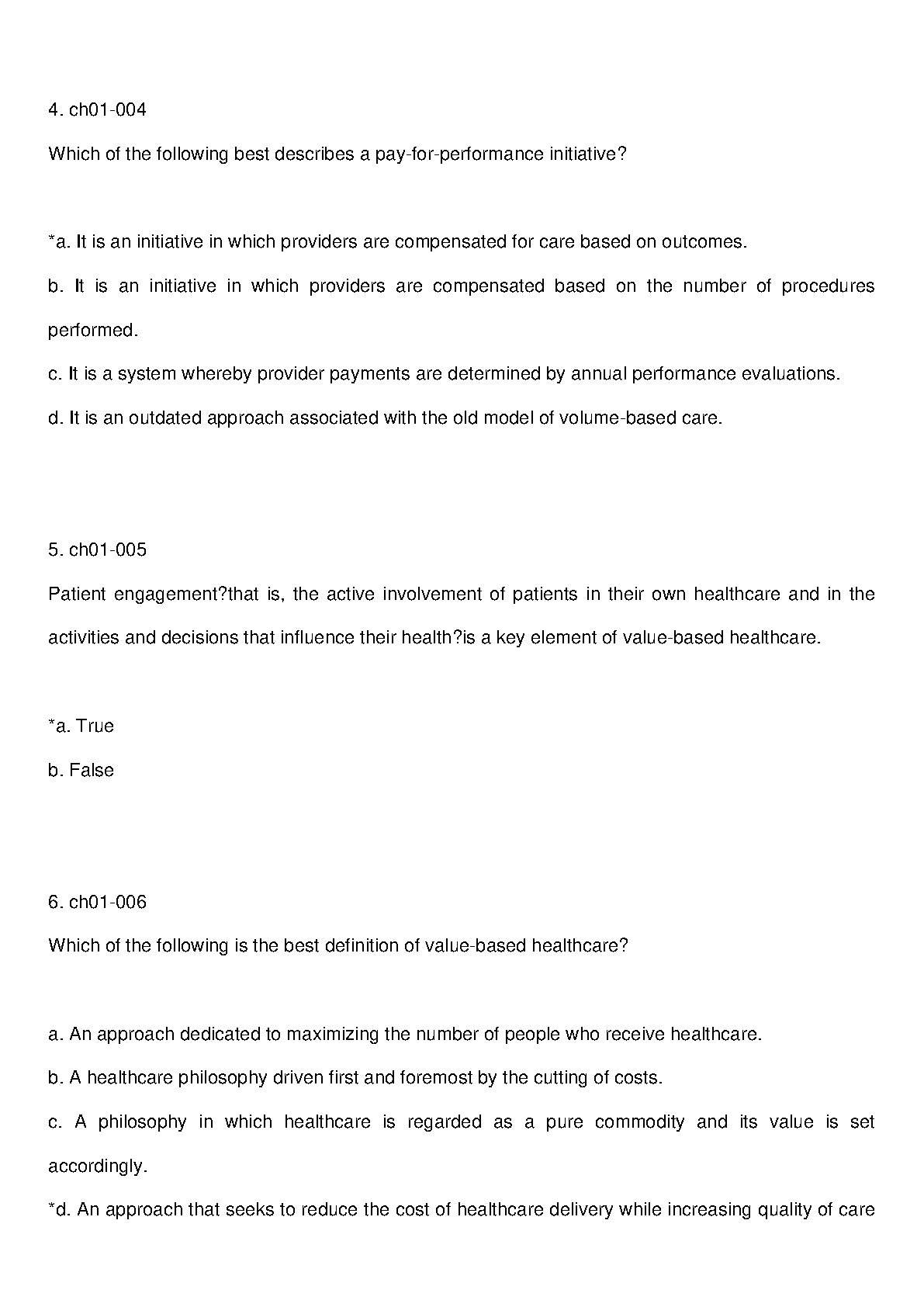 Test Bank for The Core Elements of Value in Healthcare by Paveljit S. Bindra